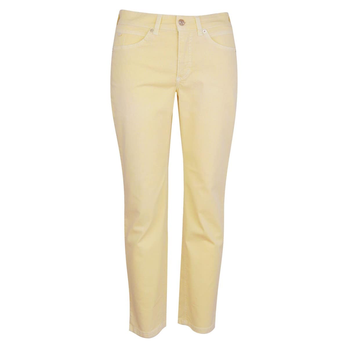 Slim leg jeans van MAC Jeans, model Angela 7/8 summer mesh in lichtgeel. Deze broek is gemaakt van stretch denim en heeft een normale taille met toelopende broekspijpen. De 7/8 jeans sluit met een knoop- en ritssluiting en heeft twee steekzakken en twee achterzakken. De onderkant van de broekspijpen hebben kleine splitjes.