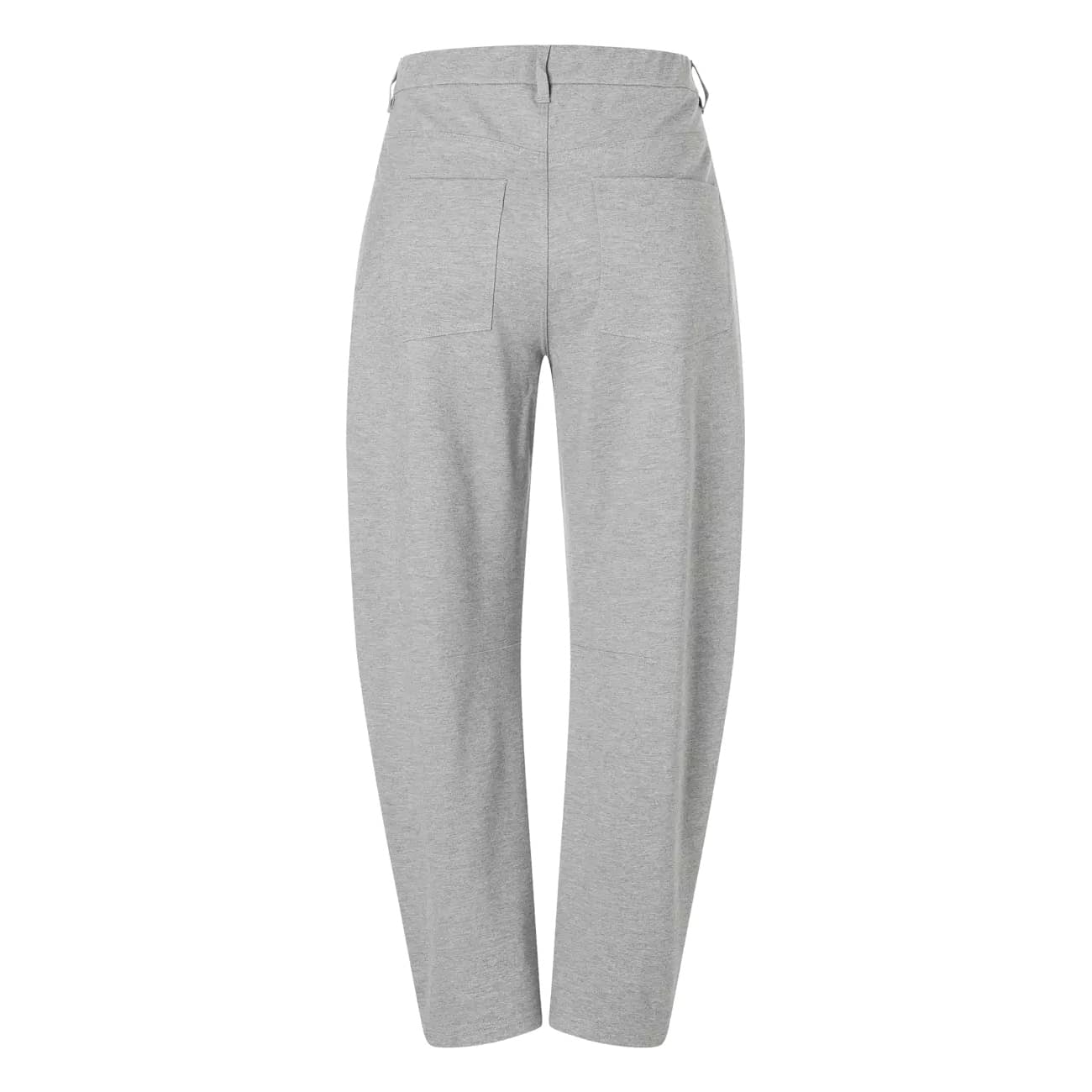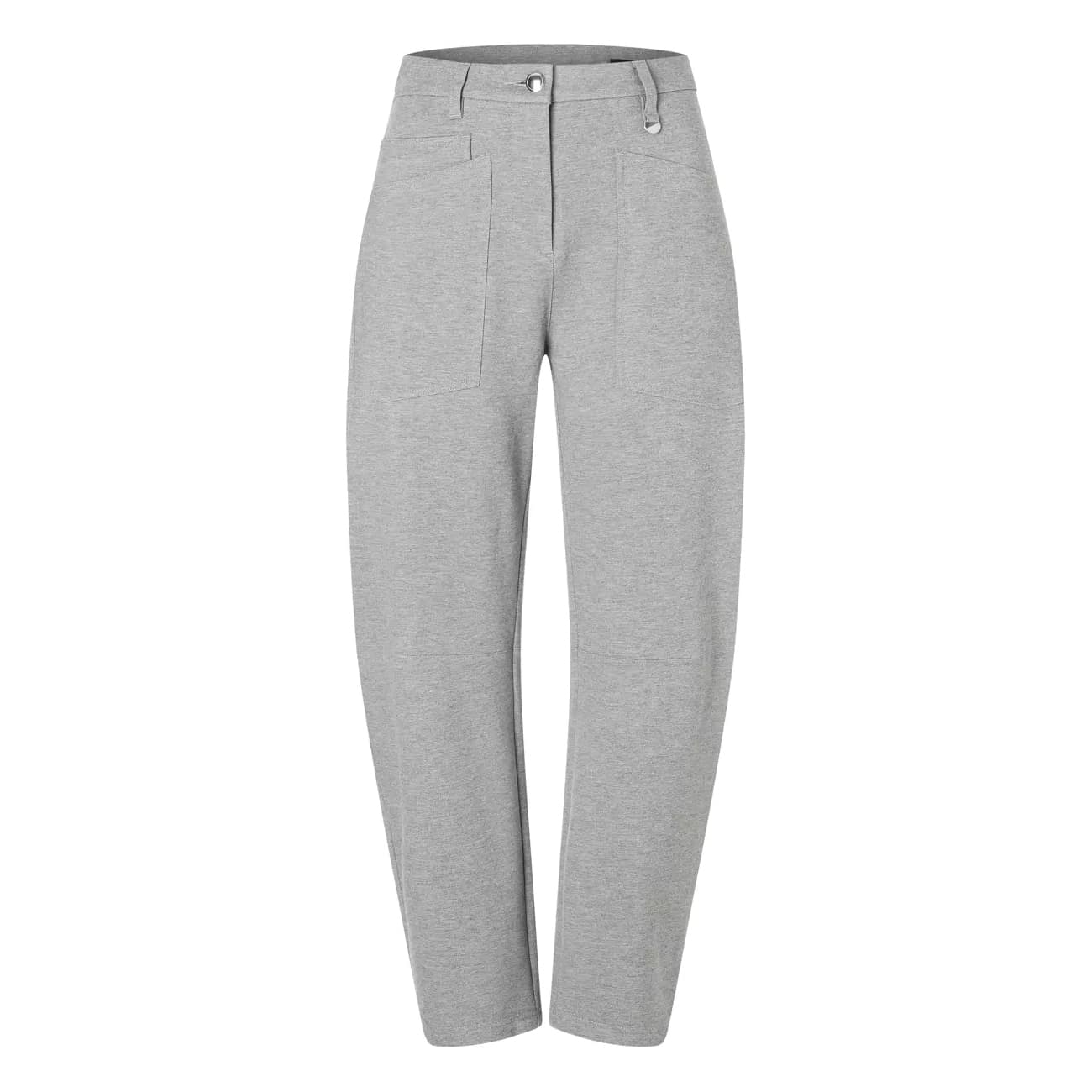 Grijze pantalon van MAC, model Baggy smart in marble melange. Deze los vallende broek is gemaakt van een jersey stof in een grijs melange, heeft een normale taille en een baggy pasvorm. De broek sluit met een knoop- en ritssluiting en heeft twee steekzakken aan de voorzijde en twee achterzakken.