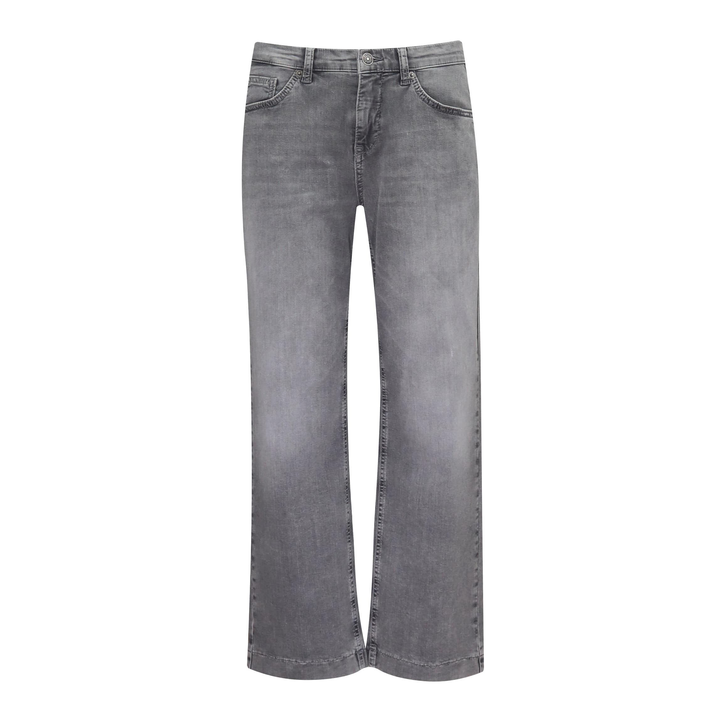 Grijze jeans van MAC, model Culotte. Deze denim broek is gemaakt van een denim lightweight stretch stof, heeft een 7/8 lengte met wijde pijpen en een normale taille. De broek sluit met een knoop- en ritssluiting en heeft twee steekzakken aan de voorzijde en twee achterzakken.