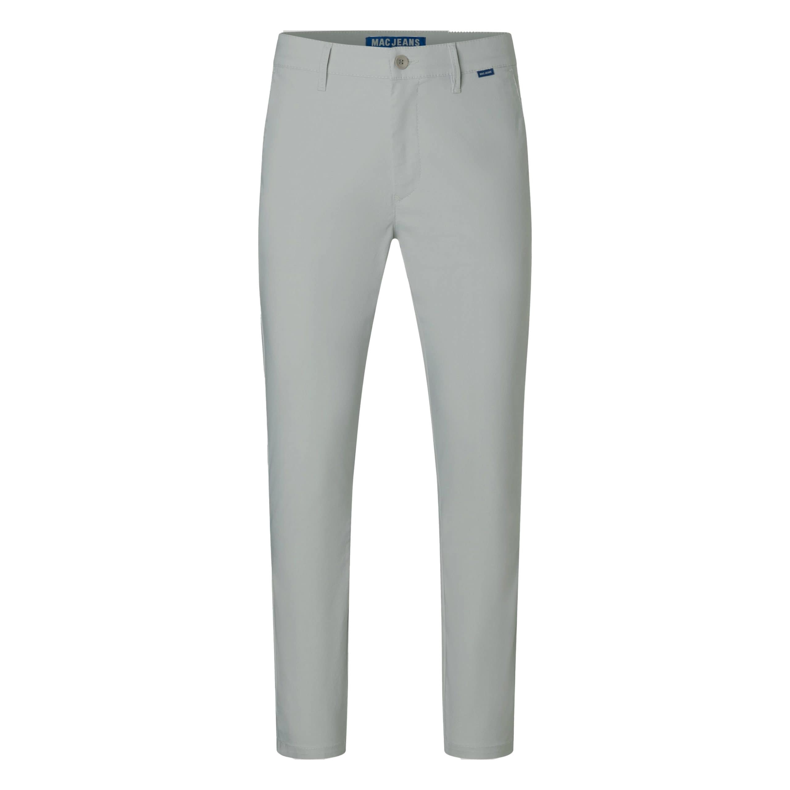 Grijze pantalon van MAC, model Griffin, tapered fit. Deze chino is gemaakt van stretch stof, heeft een tapered fit met toelopende smallere broekspijpen. De pantalon sluit met een knoop- en ritssluiting, heeft twee steekzakken, twee sier paspelzakken en een normale taille.