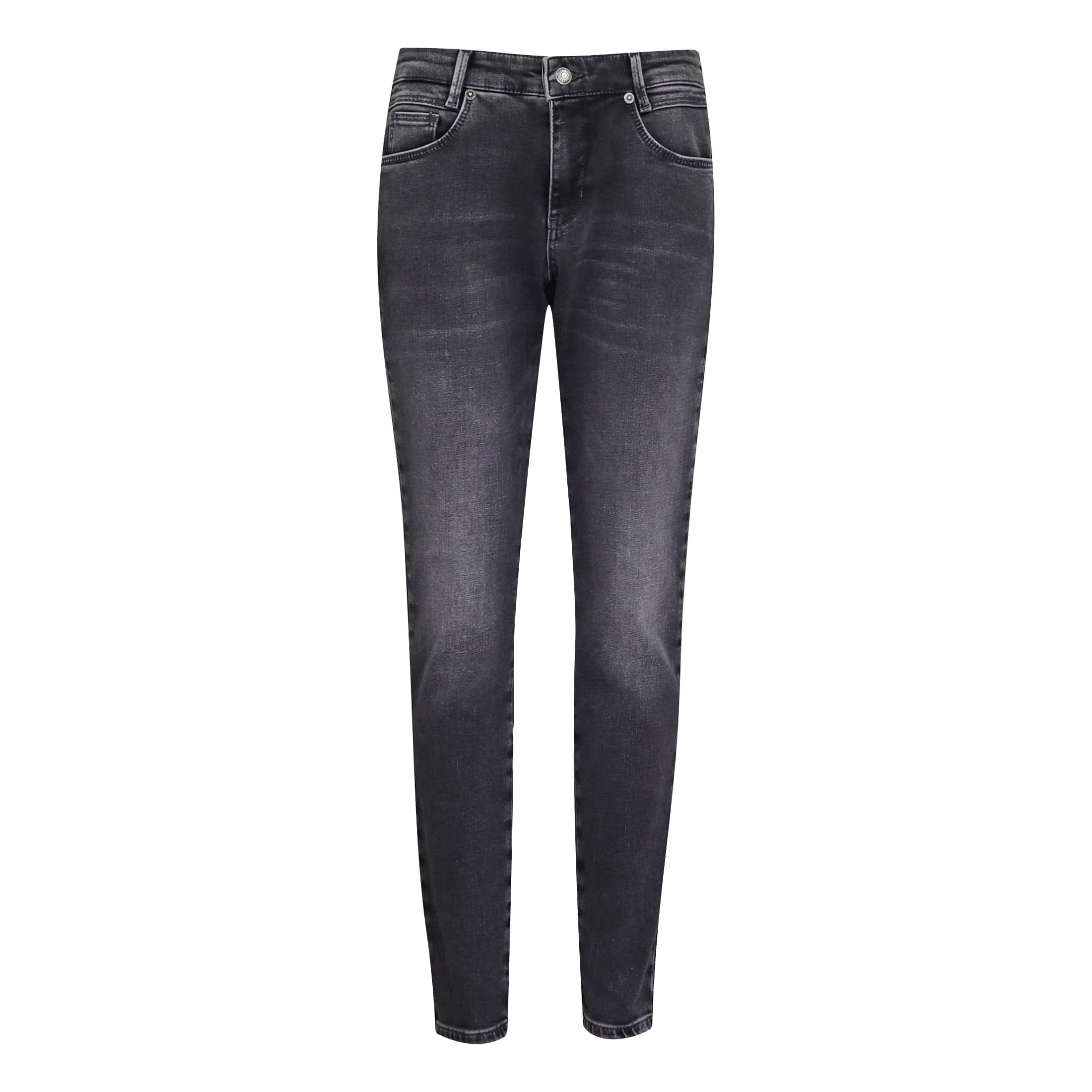 Donkergrijze jeans van MAC, model New Jersey Skinny, skinny leg in mid grey used. Deze denim broek heeft twee steekzakken aan de voorzijde, twee achterzakken en sluit met een knoop- en ritssluiting. De jeans is gemaakt van een denim stretch stof en heeft een skinny pasvorm.