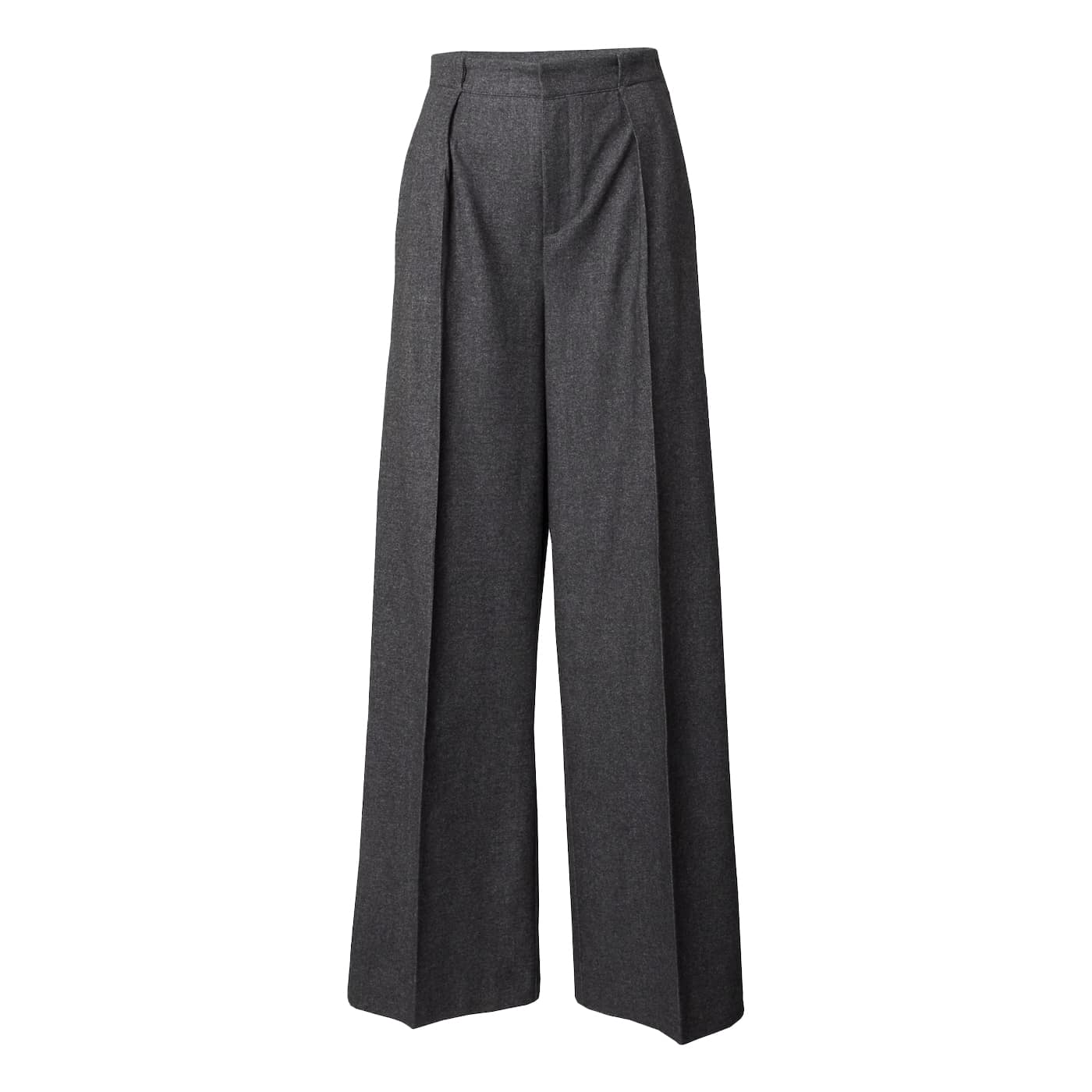 Grijze pantalon van MAC, model Wideleg pleat in shadow grey melange. Deze broek is gemaakt van premium flanel, heeft rechte, wijde broekspijpen en sluit met een knoop- en ritssluiting. De pantalon heeft een verhoogde taille met een plooi, twee steekzakken en een sierpaspelzakje aan de achterzijde.