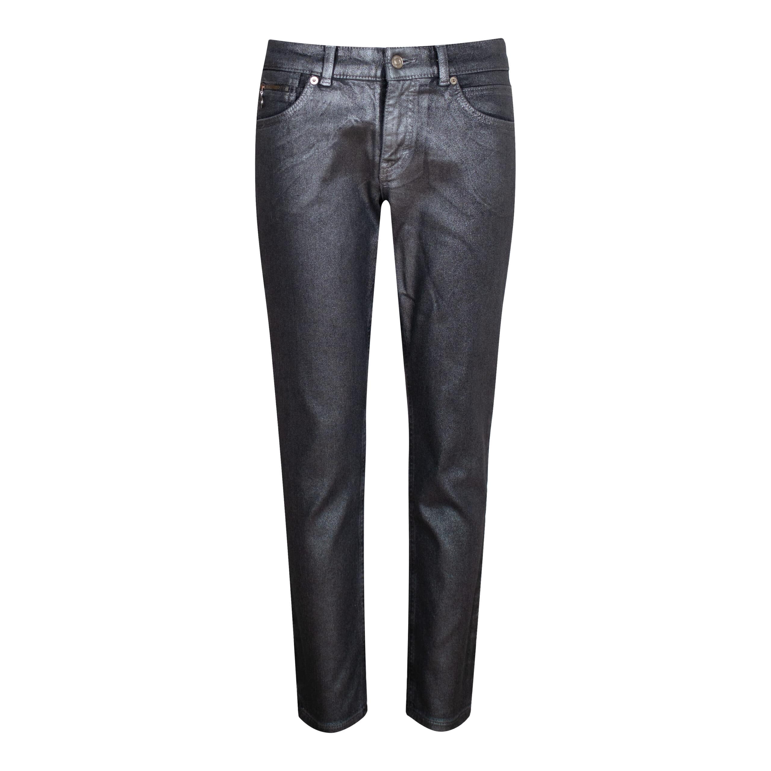 Grijze jeans van MAC, model Slim, slim fit, slim leg. Deze lange broek is gemaakt van grijze stretch thermo denim (cosy denim) met een zilveren coating en heeft een normale taille met rechte broekspijpen. De slim fit jeans sluit met een knoop- en ritssluiting en heeft twee steekzakken en twee achterzakken.
