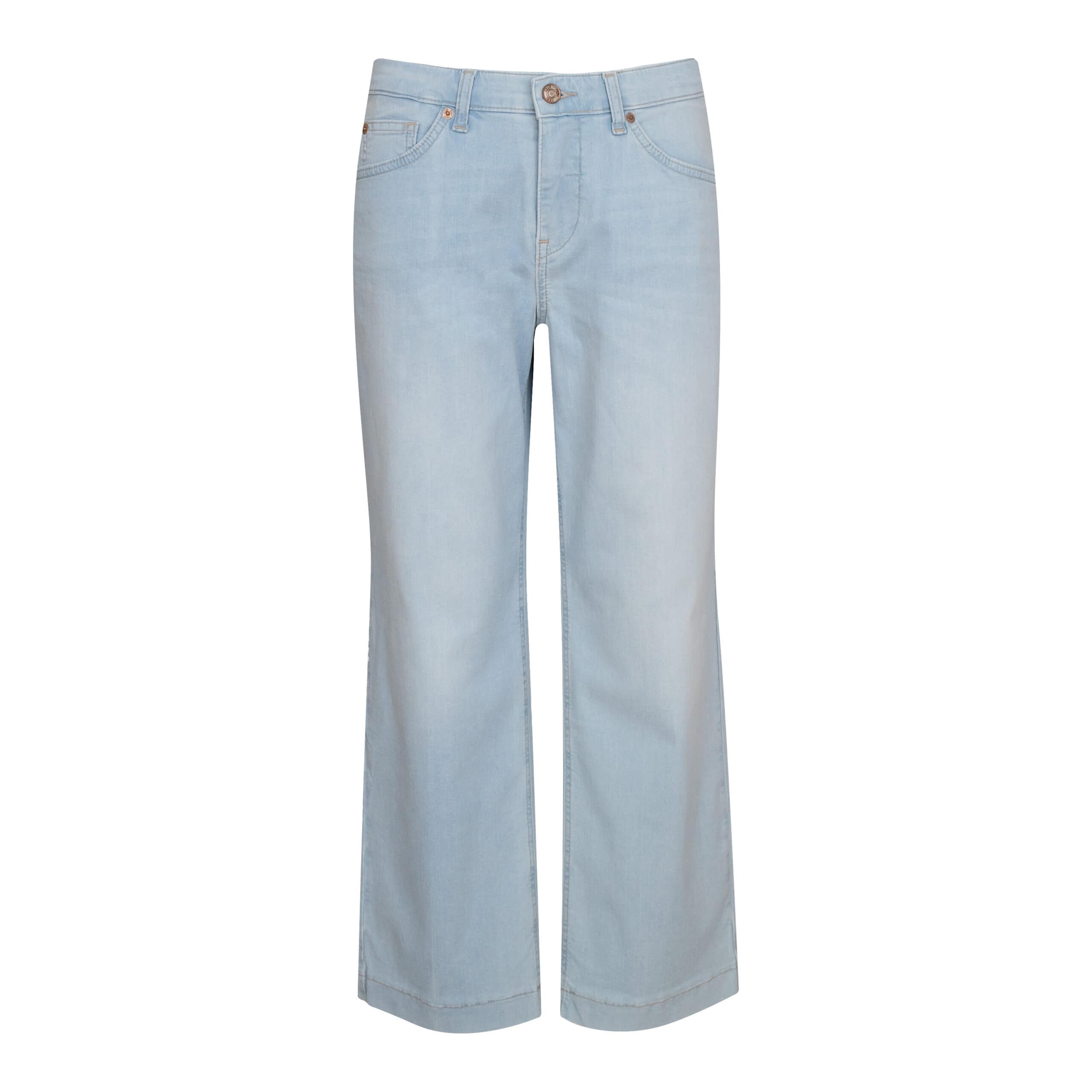 Wijde jeans van MAC, model Culotte, straight leg. Deze jeans is gemaakt van ultra light denim en heeft een 7/8 lengte met wijde, rechte broekspijpen. De broek sluit met een knoop- en ritssluiting, heeft een normale taille, twee steekzakken en twee achterzakken.