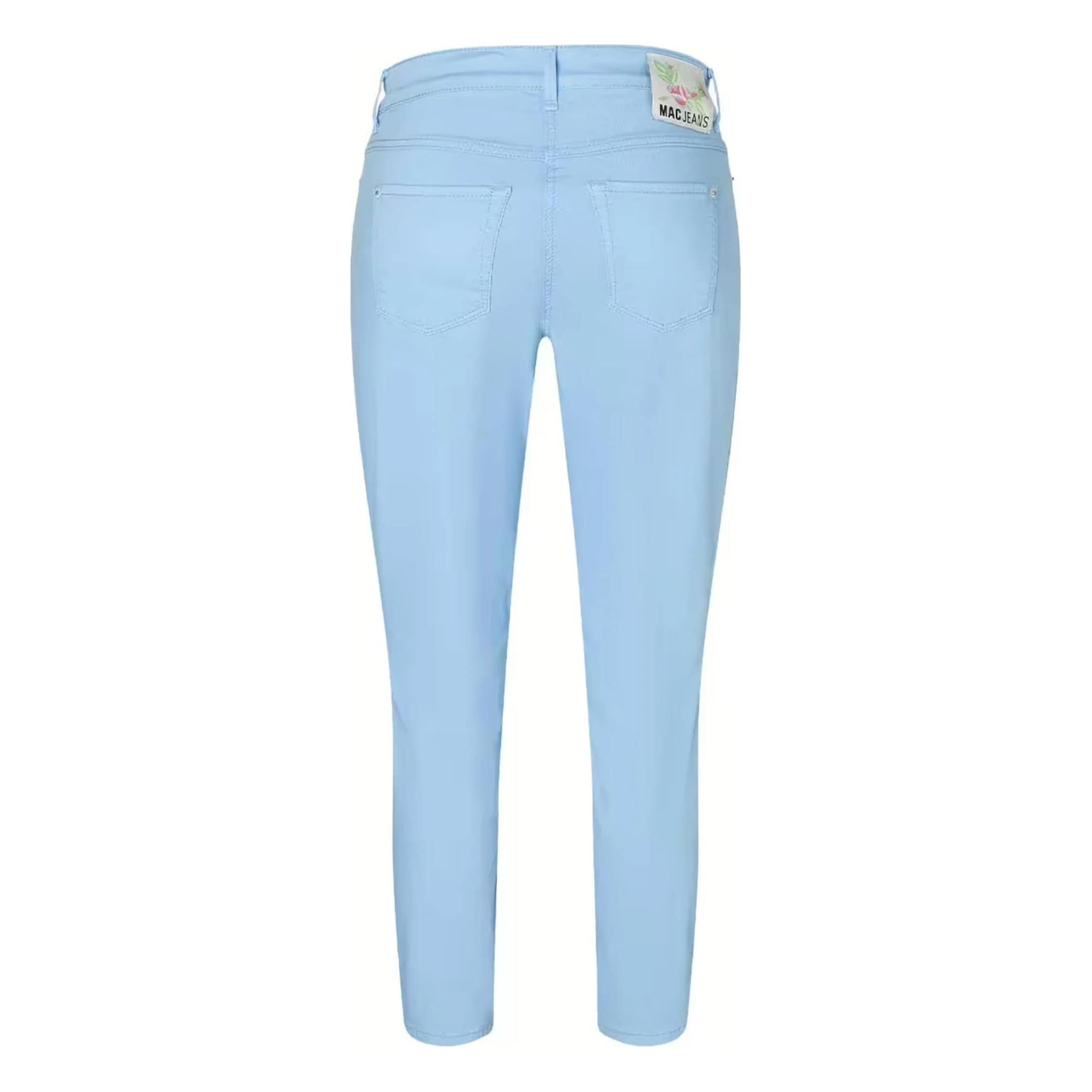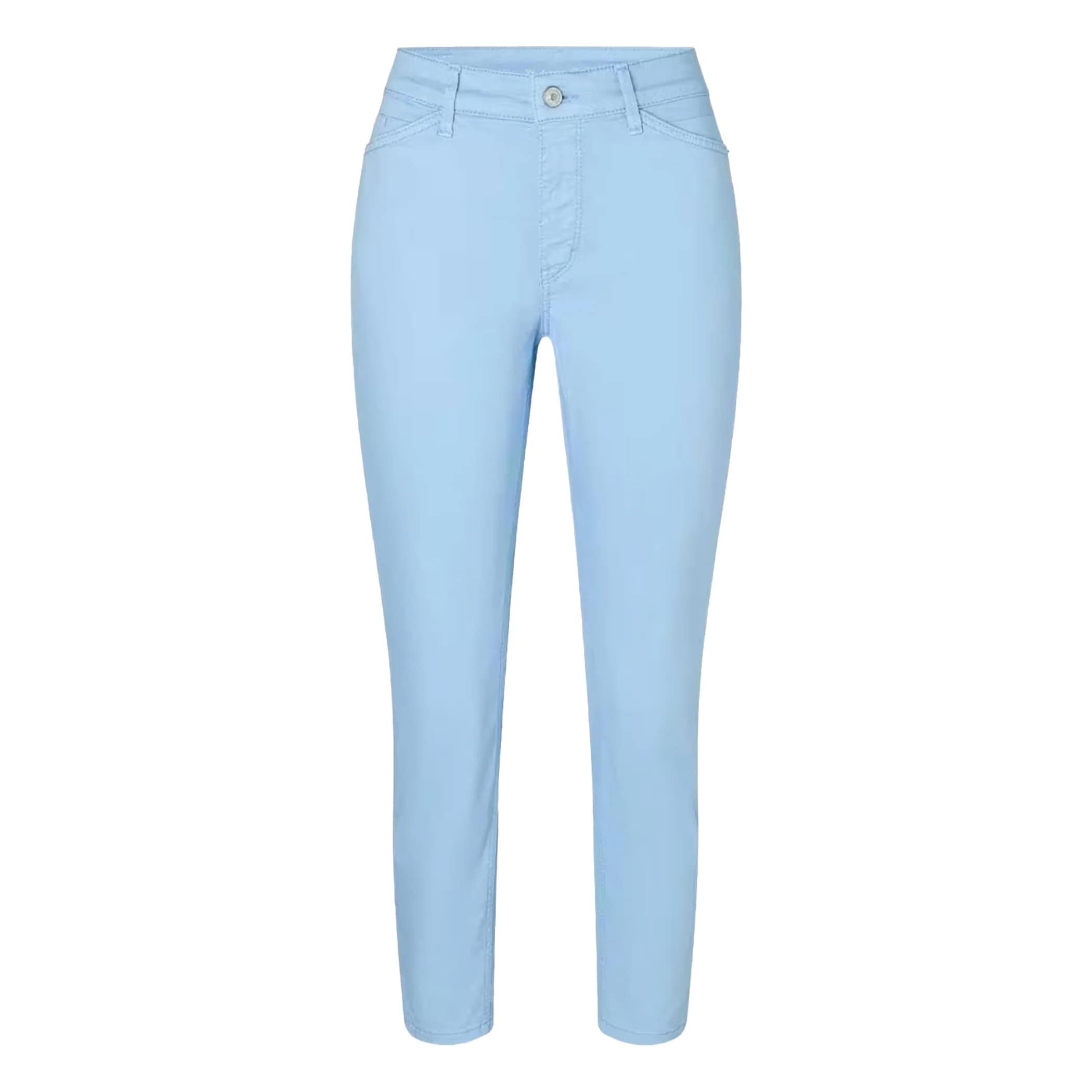 Cropped jeans van MAC, model Dream Summer, slim leg in bel air blue. Deze 7/8 broek is gemaakt van een katoenen stretch stof (wonderlight), heeft een normale taille en kleine splitjes aan het einde van de broekspijpen. De pantalon sluit met een knoop- en ritssluiting, heeft twee steekzakken, twee achterzakken en een slim fit pasvorm.