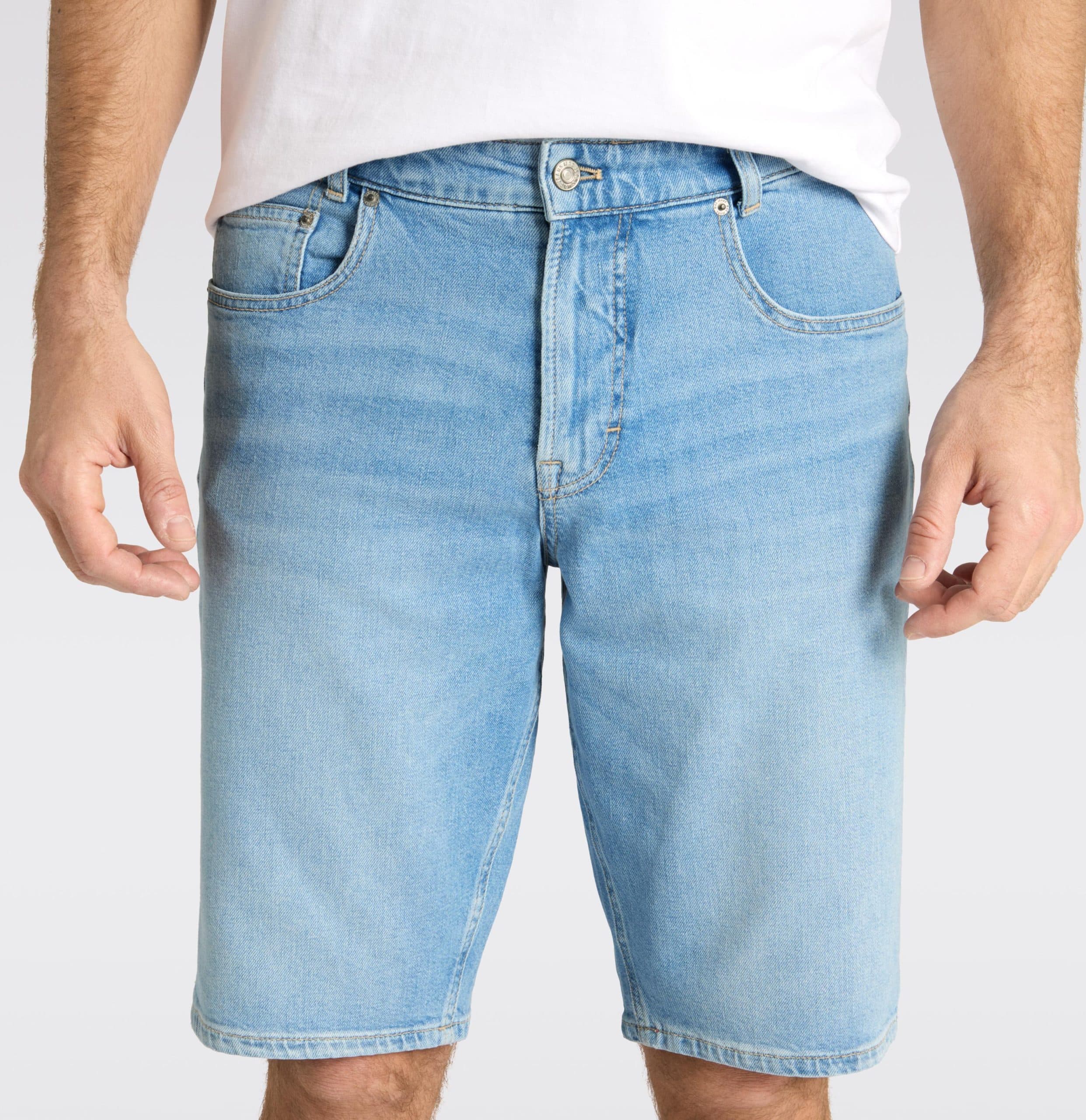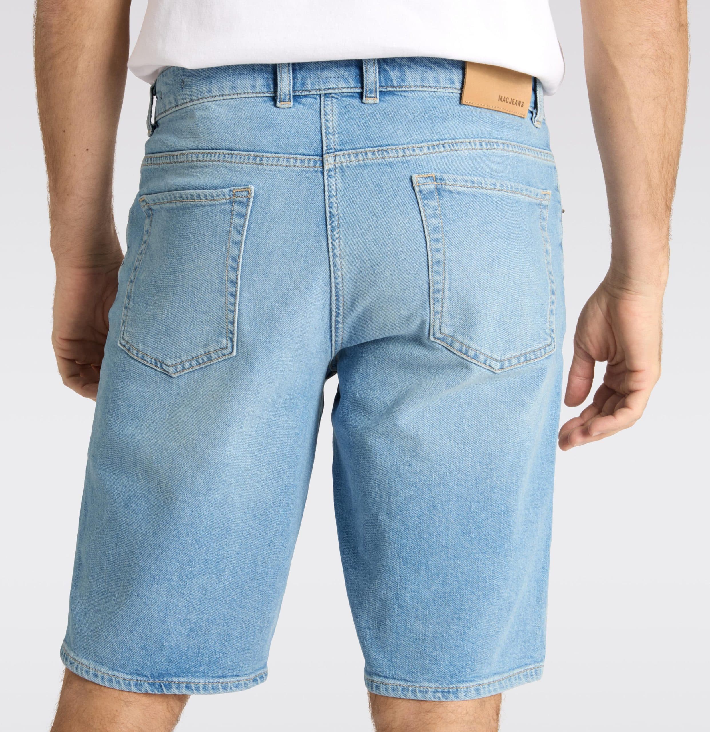 Lichtblauwe short van MAC, model Rick Bermuda in authentic summer bleach. Deze bermuda is gemaakt van stretch denim, heeft een comfort fit en rechte broekspijpen. De bermuda sluit met een knoop- en ritssluiting, heeft twee steekzakken en twee achterzakken.