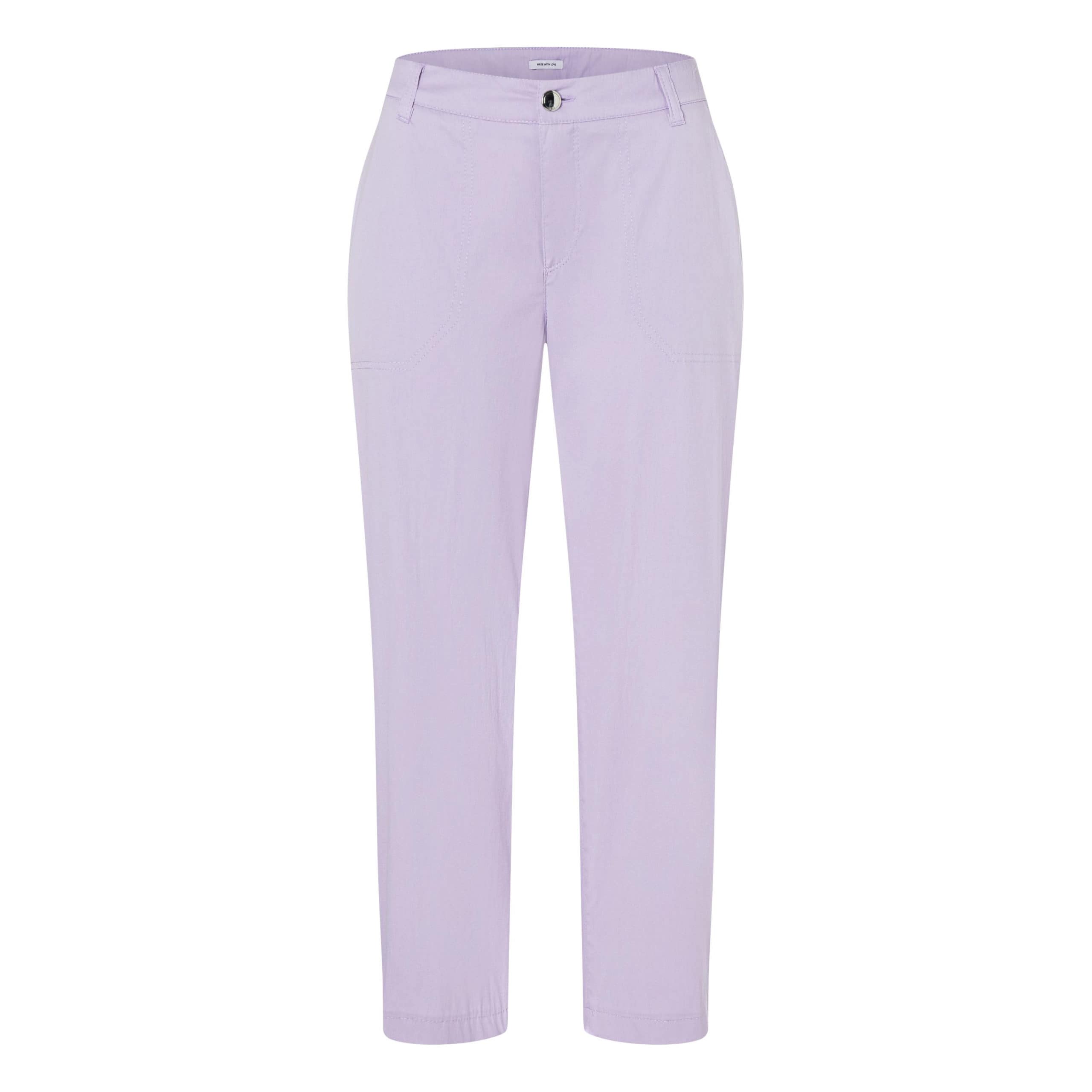 Wijde pantalon van MAC, model Nora cropped in light lavender. Deze 7/8 broek is gemaakt van een dunne ultra light katoenen stof en heeft rechte wijde broekspijpen. De broek sluit met een knoop- en ritssluiting en heeft twee steekzakken en twee achterzakken.