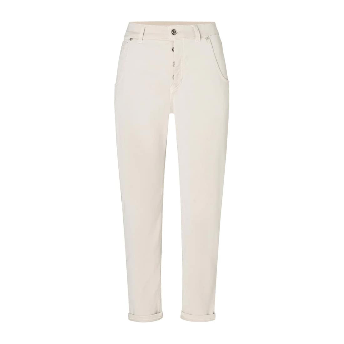 Ecru pantalon van MAC, model Lu relaxed in ivory antique. Deze broek is gemaakt van een soepelvallende lyoccell stof en heeft een relaxte pasvorm. De broek sluit met een zichtbare knoopsluiting, heeft een hoge taille, twee steekzakken en twee achterzakken.