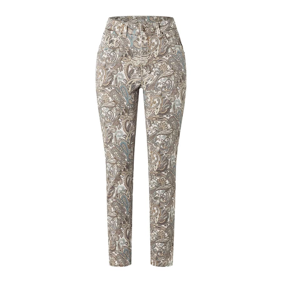 Paisley jeans van MAC, model Mel, feminine fit, slim leg. Deze denim broek heeft een iets verhoogde smalle taille met een slim fit pasvorm. De jeans sluit met een knoop- en ritssluiting, heeft twee steekzakken, twee achterzakken.
