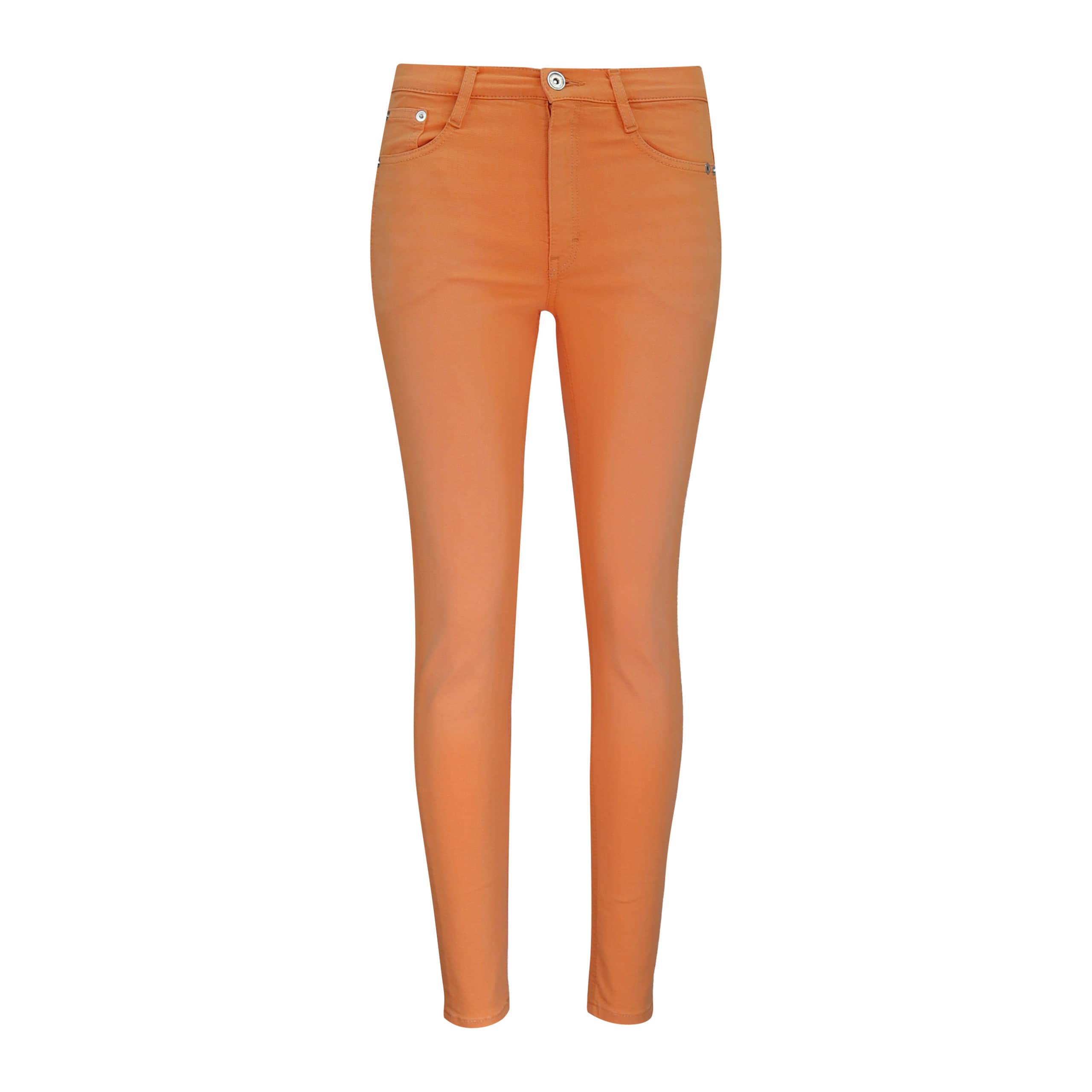 Oranje jeans van MAC No.1, model Skinny. Deze spijkerbroek is gemaakt van stretch denim, heeft een hogere taille en skinny pasvorm. De jeans sluit met een knoop- en ritssluiting, heeft twee steekzakken en twee achterzakken.