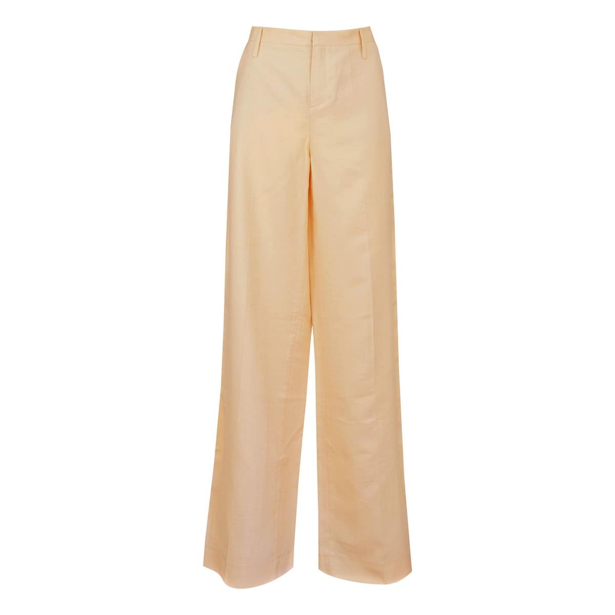 Palazzo pantalon van MAC, model Hype. Deze licht beige pantalon heeft een hoge taille met een elegante wijde broekspijpen. De broek heeft een haakje, knoop- en ritssluiting met twee steekzakken en twee sier paspelzakken aan de achterzijde.