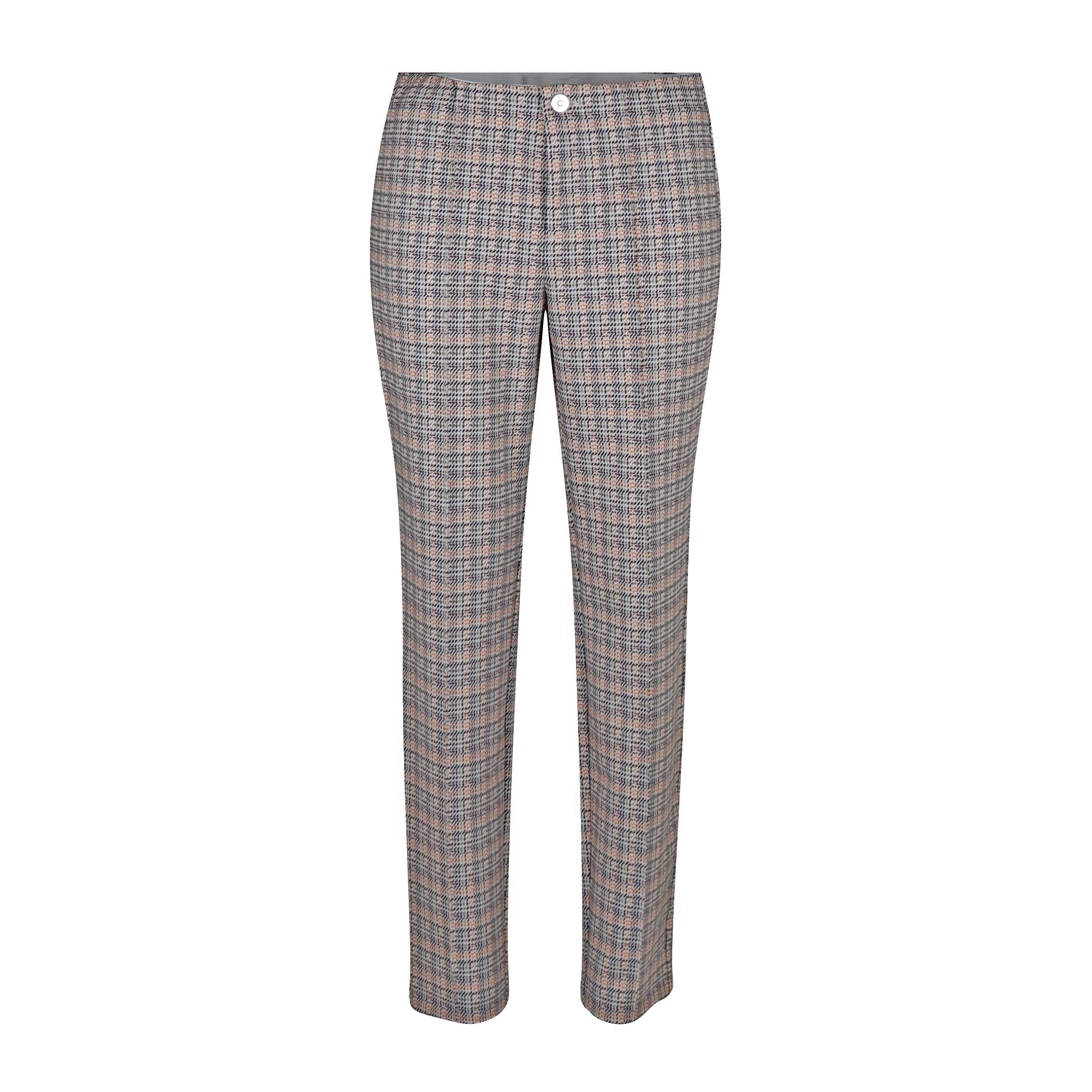 Pantalon van MAC, model Anna. Deze slim fit broek heeft toelopende pijpen, een elastische taille en valt boven de enkels. De broek sluit met een knoop- en ritssluiting en heeft twee steekzakken aan de voorzijde de gesloten worden met een ritsje en twee sier paspelzakjes. Aan de voorzijde loopt er een naad over de broekspijpen die ervoor zorgt dat je benen langer lijken.