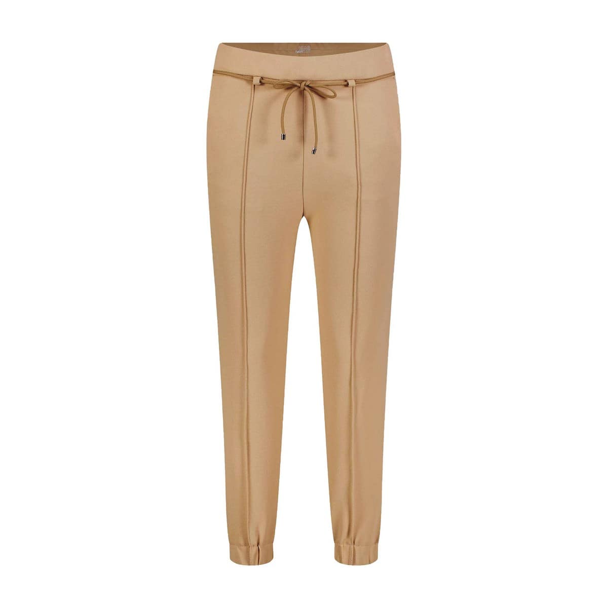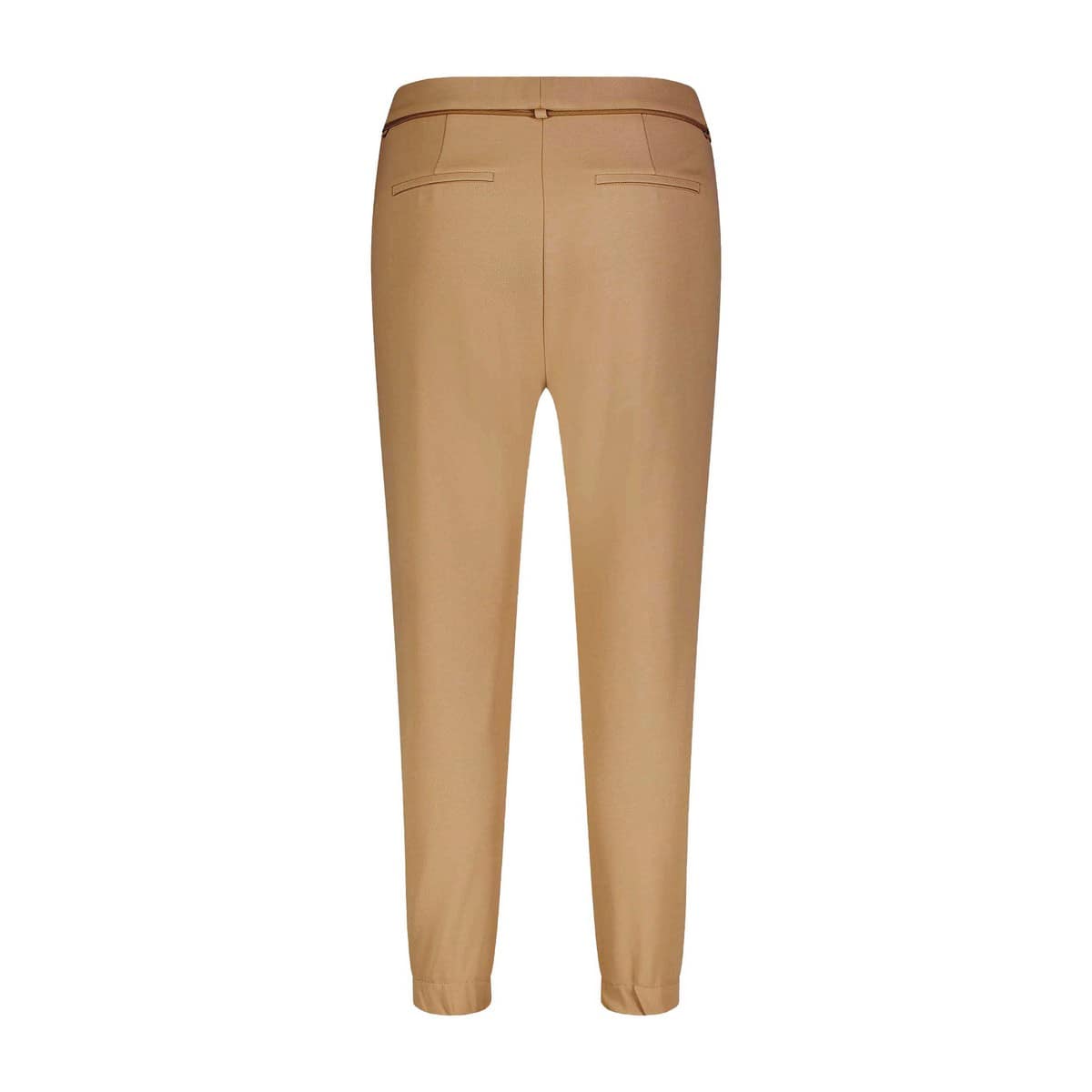 Relaxte broek van MAC, model Essential in golden terra. Deze slim fit broek is gemaakt van een comfortabele stretch stof en heeft een elastische taille met een elegant trekkoordje. De broek heeft twee steekzakken aan de voorzijde en twee sier paspelzakjes.