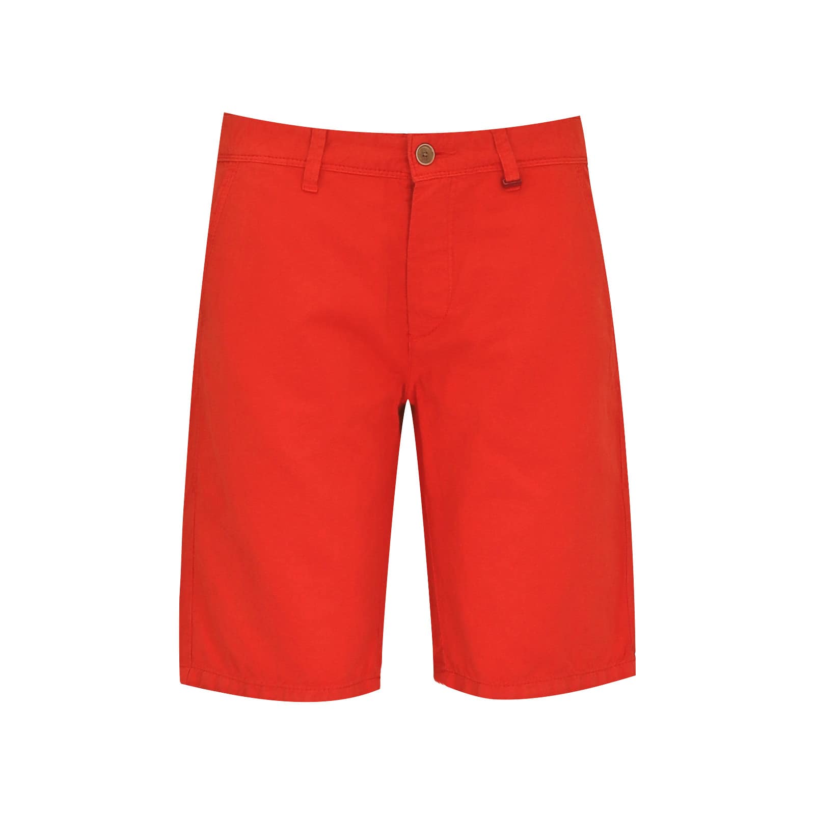 Rode bermuda van MAC, model Lenny bermuda. Deze short is gemaakt van een mix van katoen en linnen en heeft een normale taille. De korte broek sluit met een knoop- en ritssluiting en heeft twee steekzakken en twee paspelzakken.