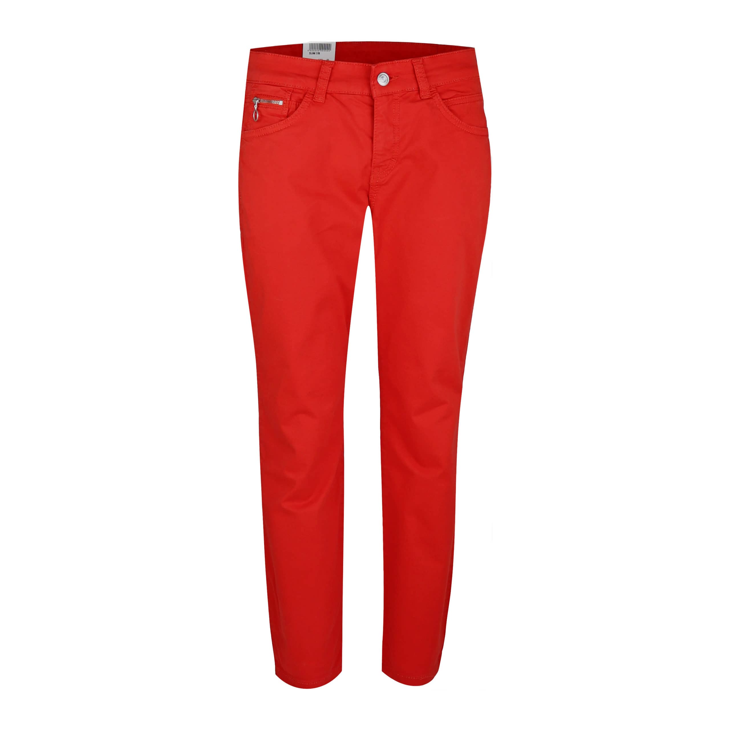 Slim fit broek van MAC, model Slim 7/8, straight fit, slim leg. Deze rode broek is gemaakt van stretch katoen en heeft een normale taille met licht taps toelopende broekspijpen. De jeans sluit met een knoop- en ritssluiting en heeft twee steekzakken en twee achterzakken.