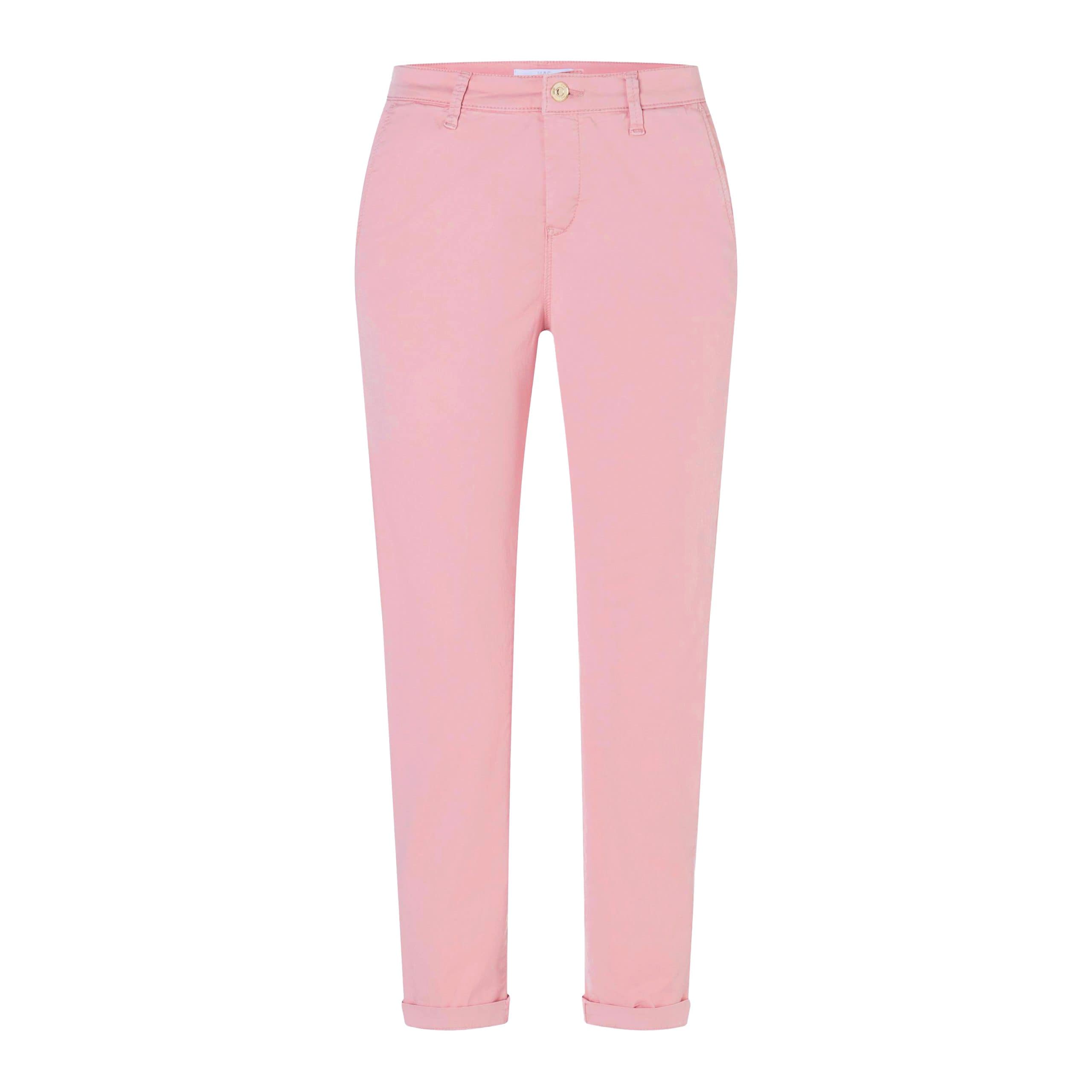 Roze chino van MAC, model Chino turn up. Deze broek is gemaakt van een katoenen stretch stof (gabardine), heeft een slim fit pasvorm en valt tot op de enkels. De broek sluit met een knoop- en ritssluiting, heeft twee steekzakken aan de voorzijde en twee sier paspelzakjes.