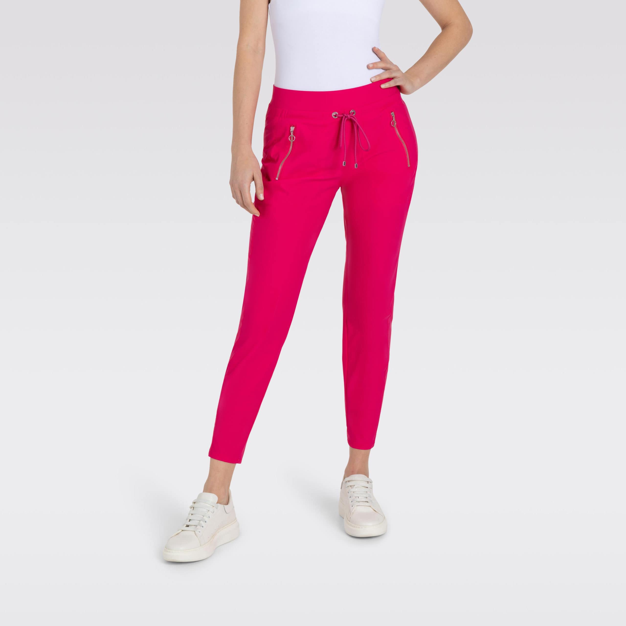 Relaxte pantalon van MAC, model Easy active in virtual pink. Deze broek heeft twee zakken achter een ritssluiting. De broek is gemaakt van een soepel vallende techno stretch stof met een fijn ribbeltje en heeft een elastische taille met trekkoord.