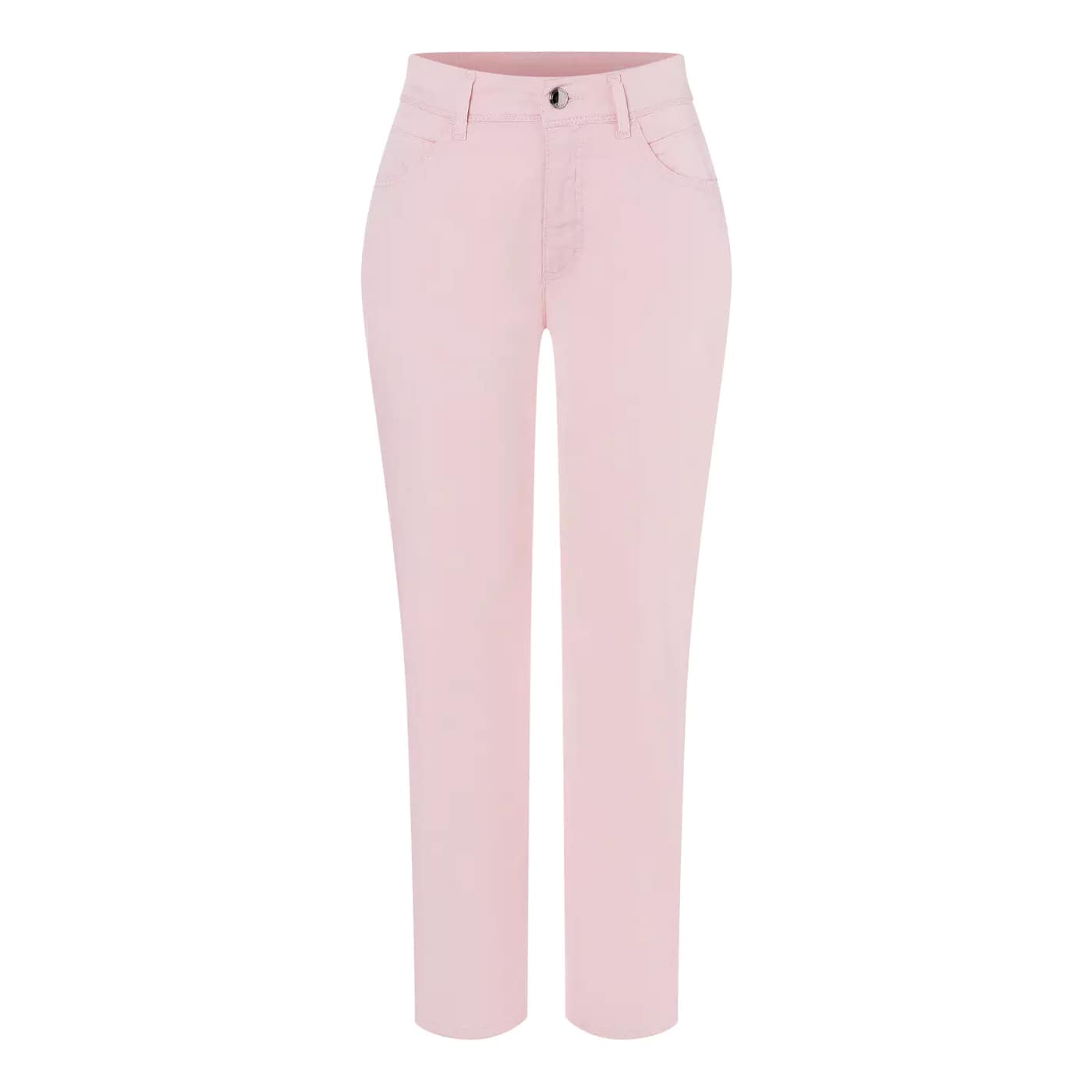 Roze pantalon van MAC, model Melanie 7/8, feminine fit, slim leg. Deze rechte 7/8 broek is gemaakt van katoenen stretch stof (ultra light summer cotton), heeft twee steekzakken aan de voorzijde, twee achterzakken en en kleine splitjes in de zoom. De jeans sluit met een knoop- en ritssluiting en heeft een hogere taille.