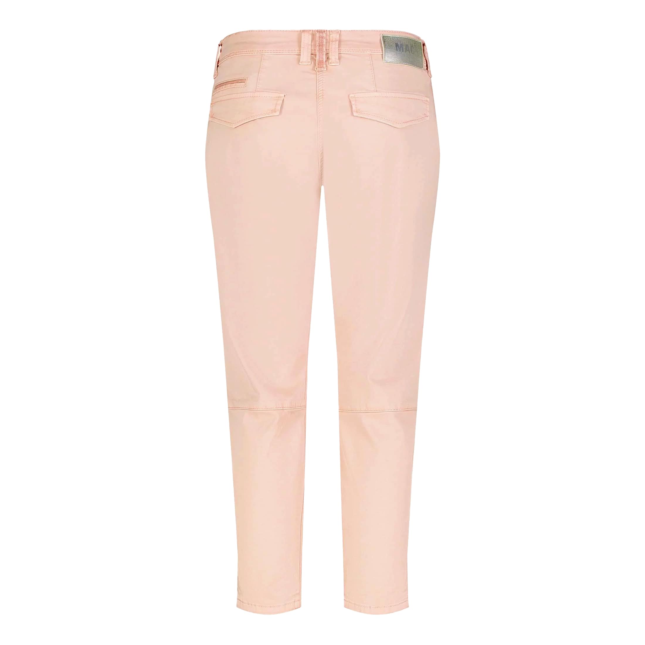 Relaxte pantalon van MAC, model Rich cargo cotton in roze. Deze katoenen broek heeft aan de onderzijde van de broekspijpen twee ritsjes. De broek heeft een slim fit pasvorm met aan de voorzijde twee steekzakken en een sierritsje op het bovenbeen.