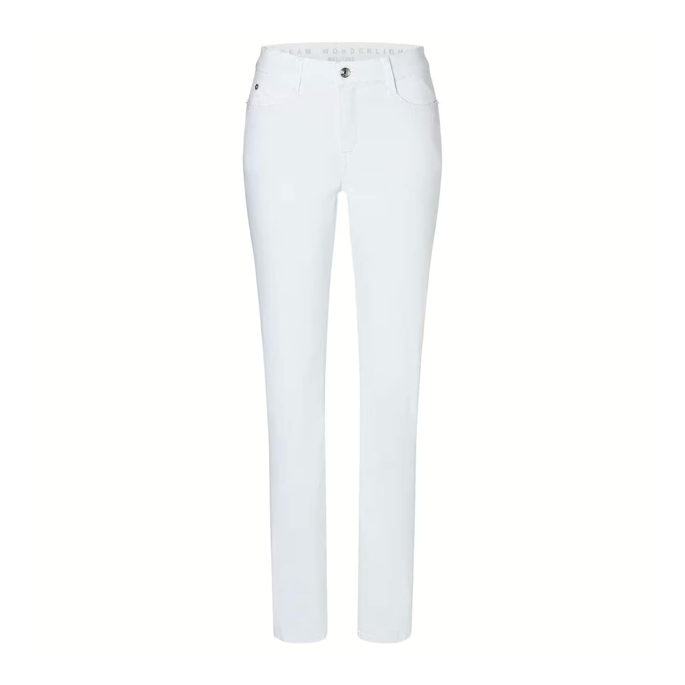 Cropped jeans van MAC, model Dream cropped, straight leg. Deze 7/8 broek is gemaakt van een witte katoenen stretch stof (wonderlight), heeft een normale taille en rechte broekspijpen. De pantalon sluit met een knoop- en ritssluiting, heeft twee steekzakken en twee achterzakken.