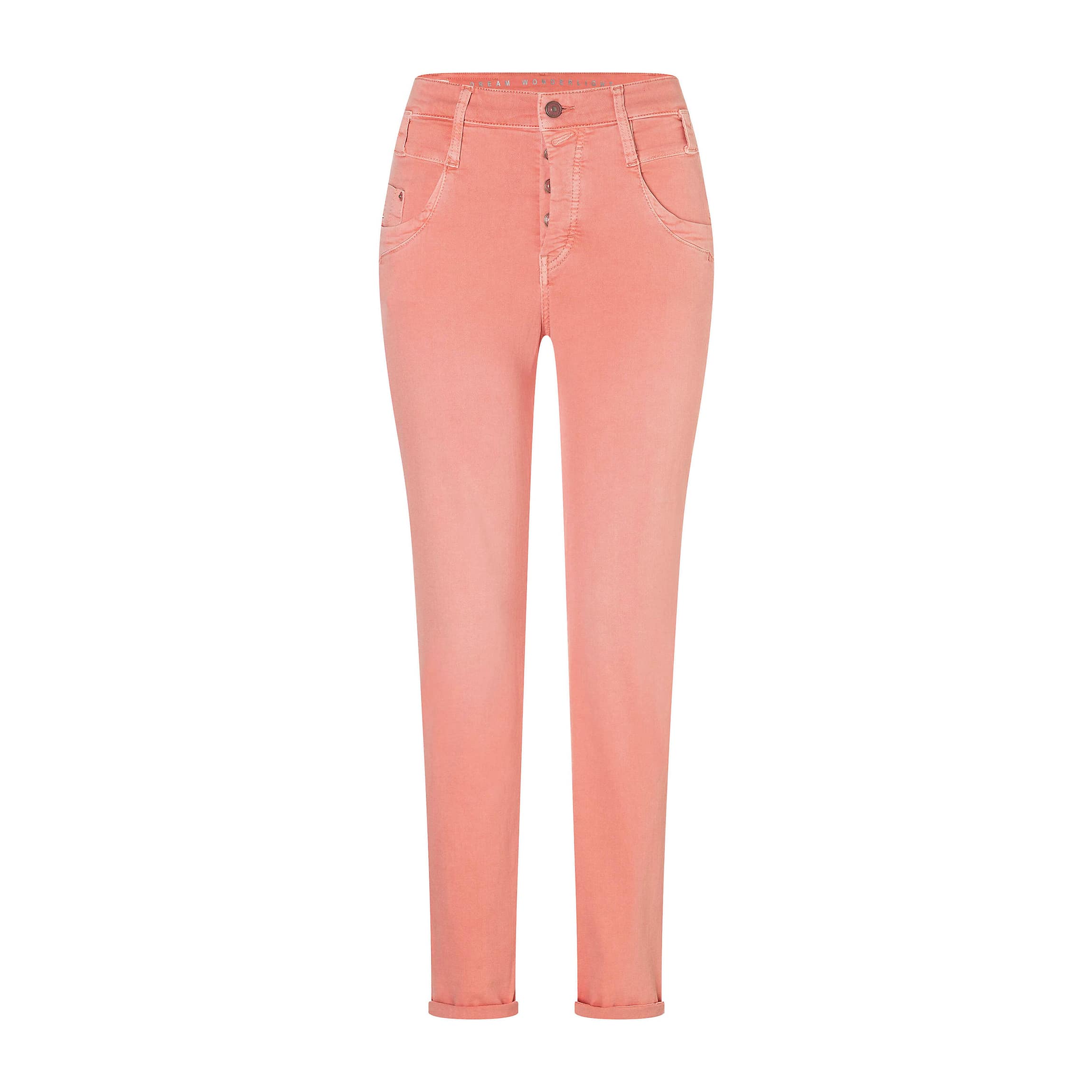 Roze jeans van MAC, model Dream Relax, slim fit, skinny leg in rosa. Deze 7/8 denim broek heeft een normale taille, twee steekzakken aan de voorzijde, twee achterzakken en sluit met een half zichtbare knoopsluiting. De jeans is gemaakt van een denim stretch stof en heeft een slim fit pasvorm.