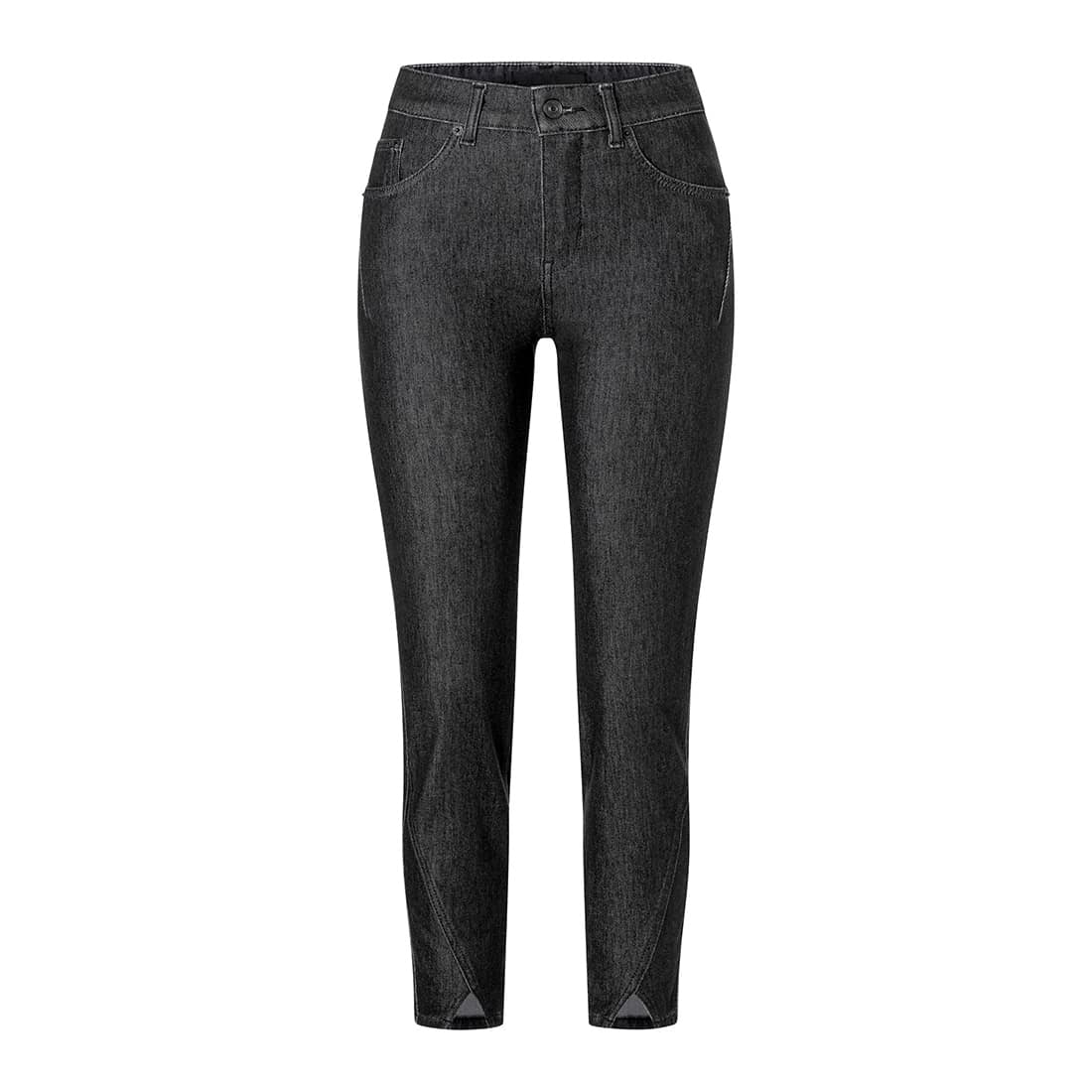 Zwarte jeans van MAC, model Deja, skinny fit, skinny leg in fashion rinsed. Deze aansluitende denim broek heeft twee steekzakken aan de voorzijde, twee achterzakken en een zoom met een naar voren geplaatste zijnaad en split. De skinny jeans is gemaakt van stretch denim, sluit met een knoop- en ritssluiting en heeft een normale taille.