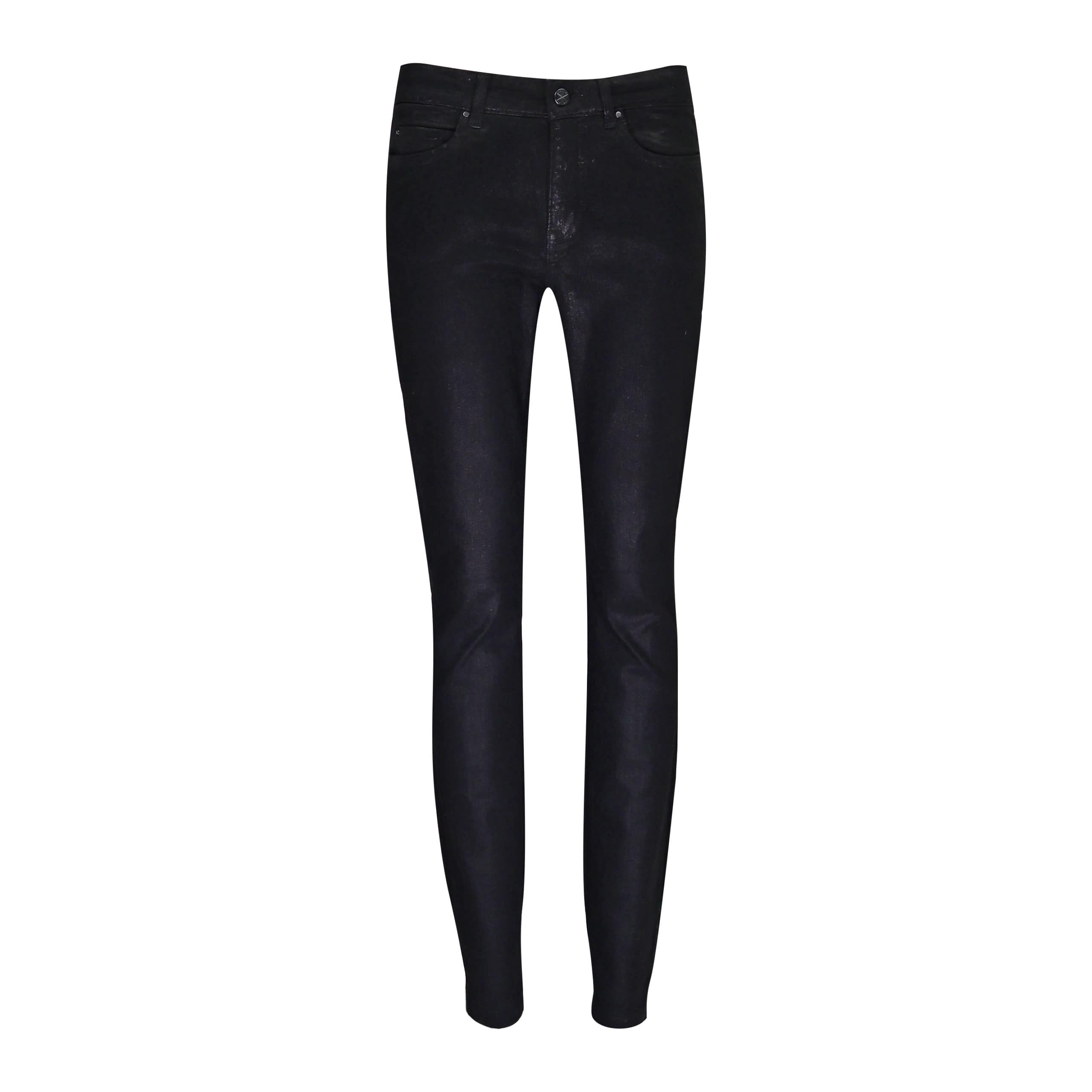 Zwarte jeans van MAC, model Dream Skinny, skinny leg. Deze denim broek heeft twee steekzakken aan de voorzijde, twee achterzakken en sluit met een knoop- en ritssluiting. De jeans heeft een skinny pasvorm en is gemaakt van een zwarte denim stretch stof met een zwarte coating.