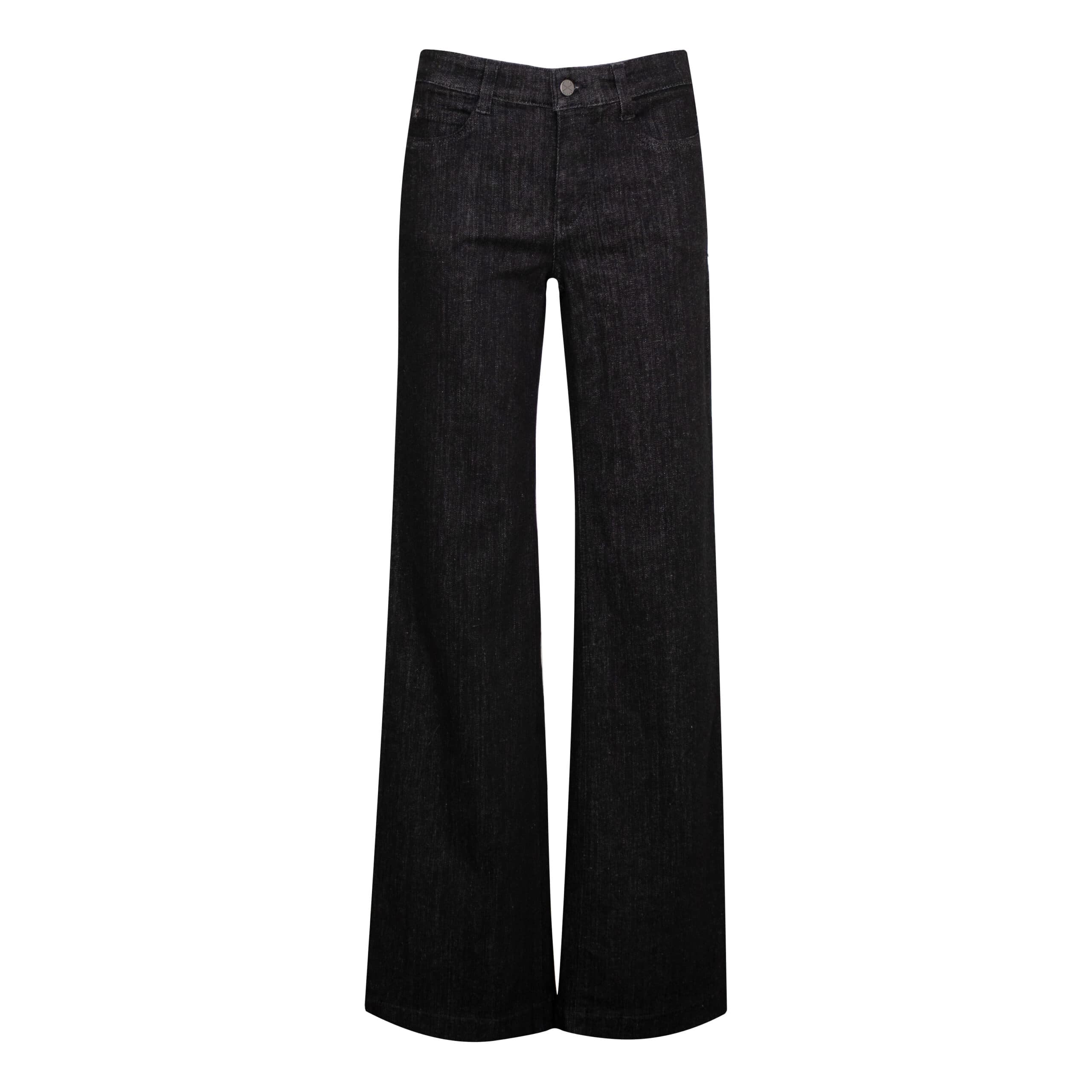 Zwarte jeans van MAC, model Dream Wide authentic, wide leg. Deze denim broek heeft een hoge taille en wijde, uitlopende broekspijpen. De jeans sluit met een knoop- en ritssluiting, heeft twee steekzakken en twee achterzakken.