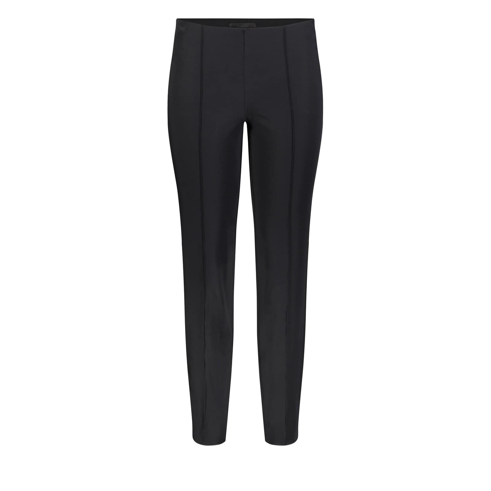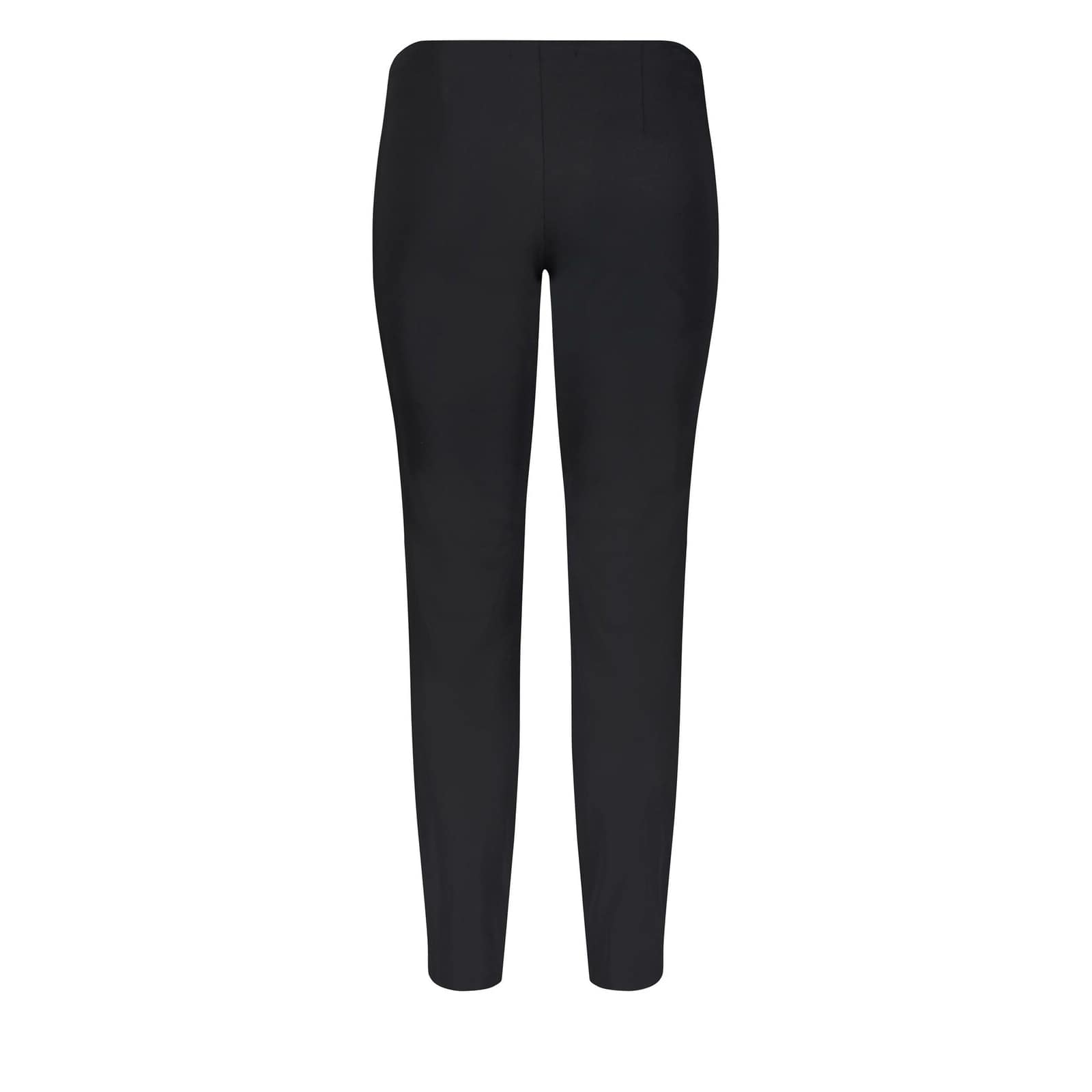 Zwarte pantalon van MAC, model Anna Summer. Deze slim fit broek heeft toelopende pijpen, een elastische taille en valt boven de enkels. Aan de voorzijde loopt er een naad over de broekspijpen, waardoor je benen langer lijken.
