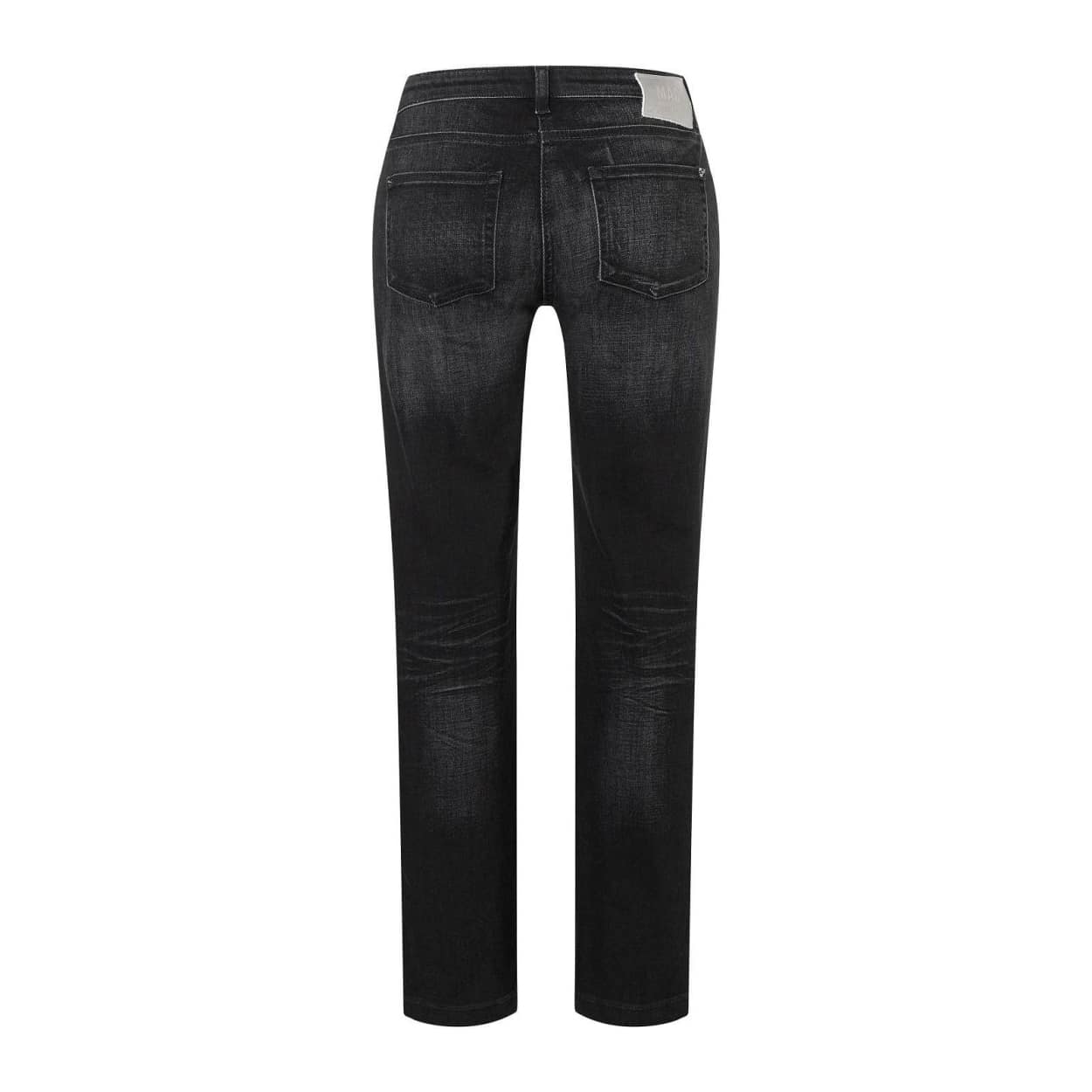 Zwarte jeans van MAC, model Rich Carla, straigth fit, straight leg. Deze denim broek heeft wijde pijpen en een normale taille. De broek sluit met een knoop- en ritssluiting en heeft twee steekzakken aan de voorzijde en twee achterzakken.