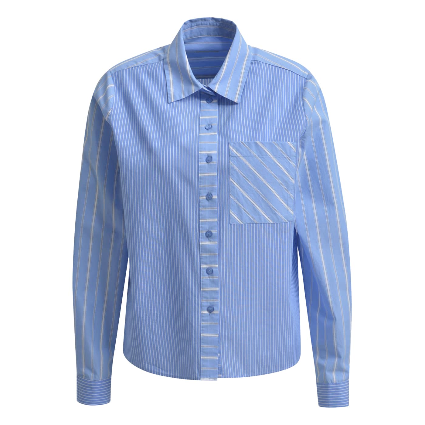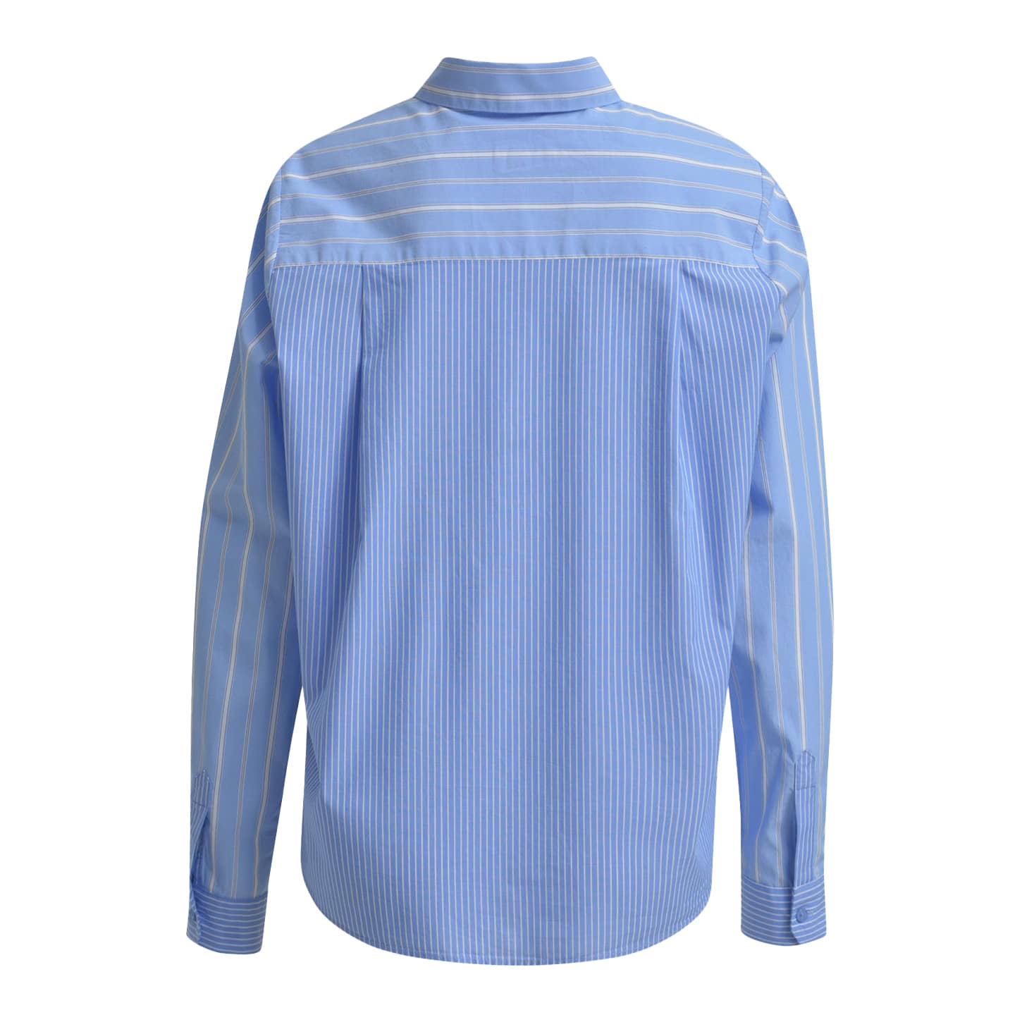 Gestreepte blouse van Milano Italy. Deze blouse is gemaakt van katoen en heeft een blauw wit gestreept motief. De blouse sluit met een knoopsluiting aan de voorzijde, heeft een kraag, borstzakje, knoopsluiting en lange mouwen met een breed gestreept motief en een losse pasvorm.