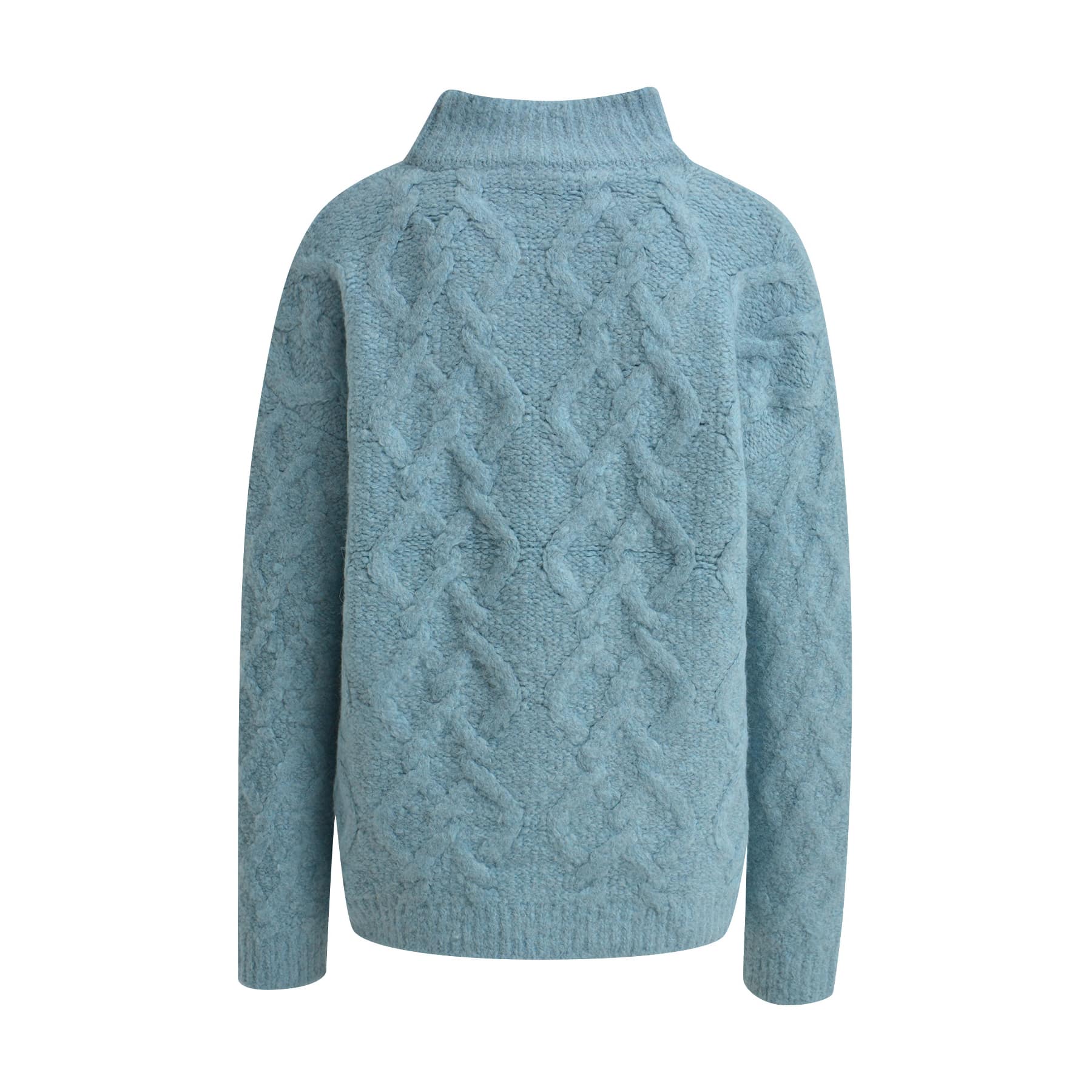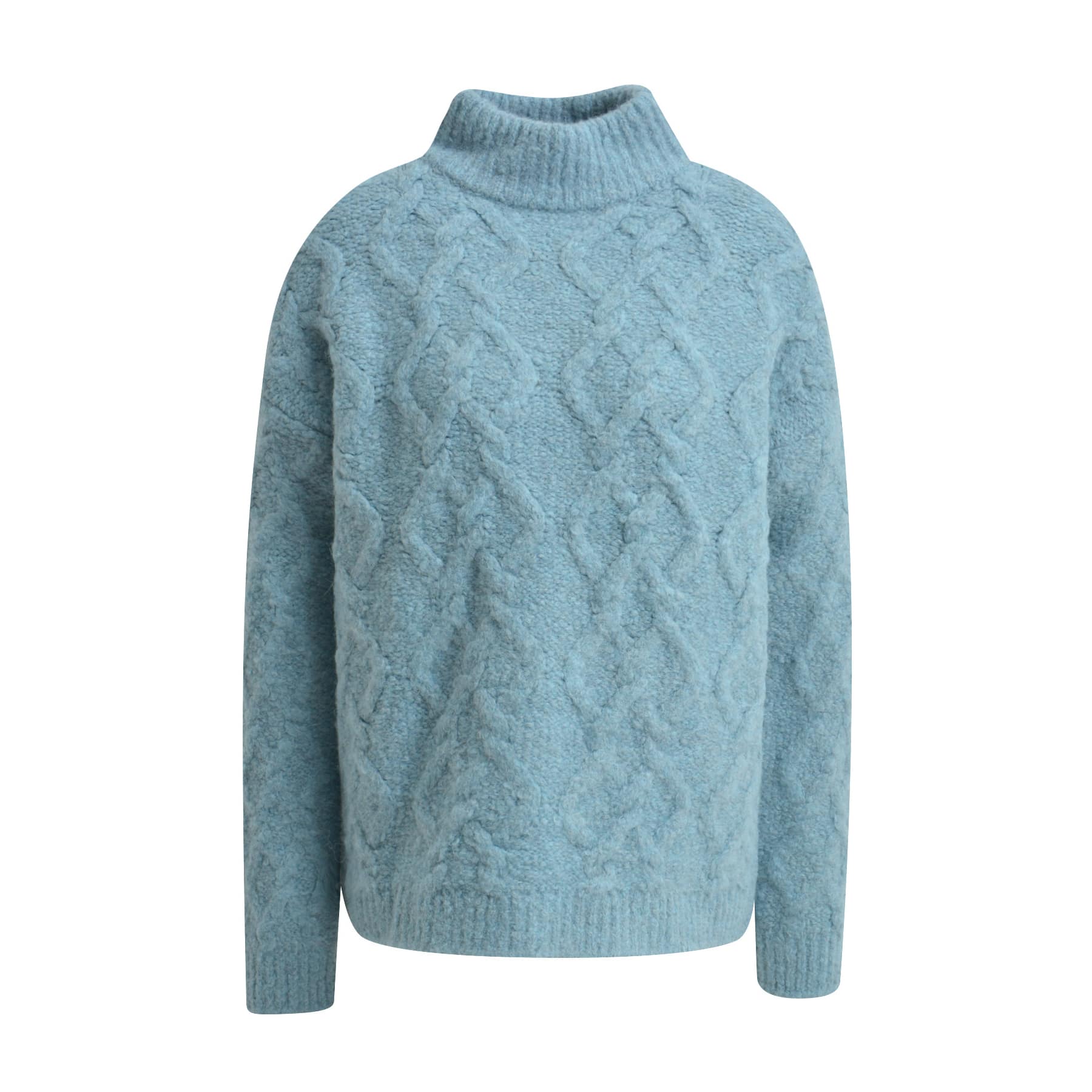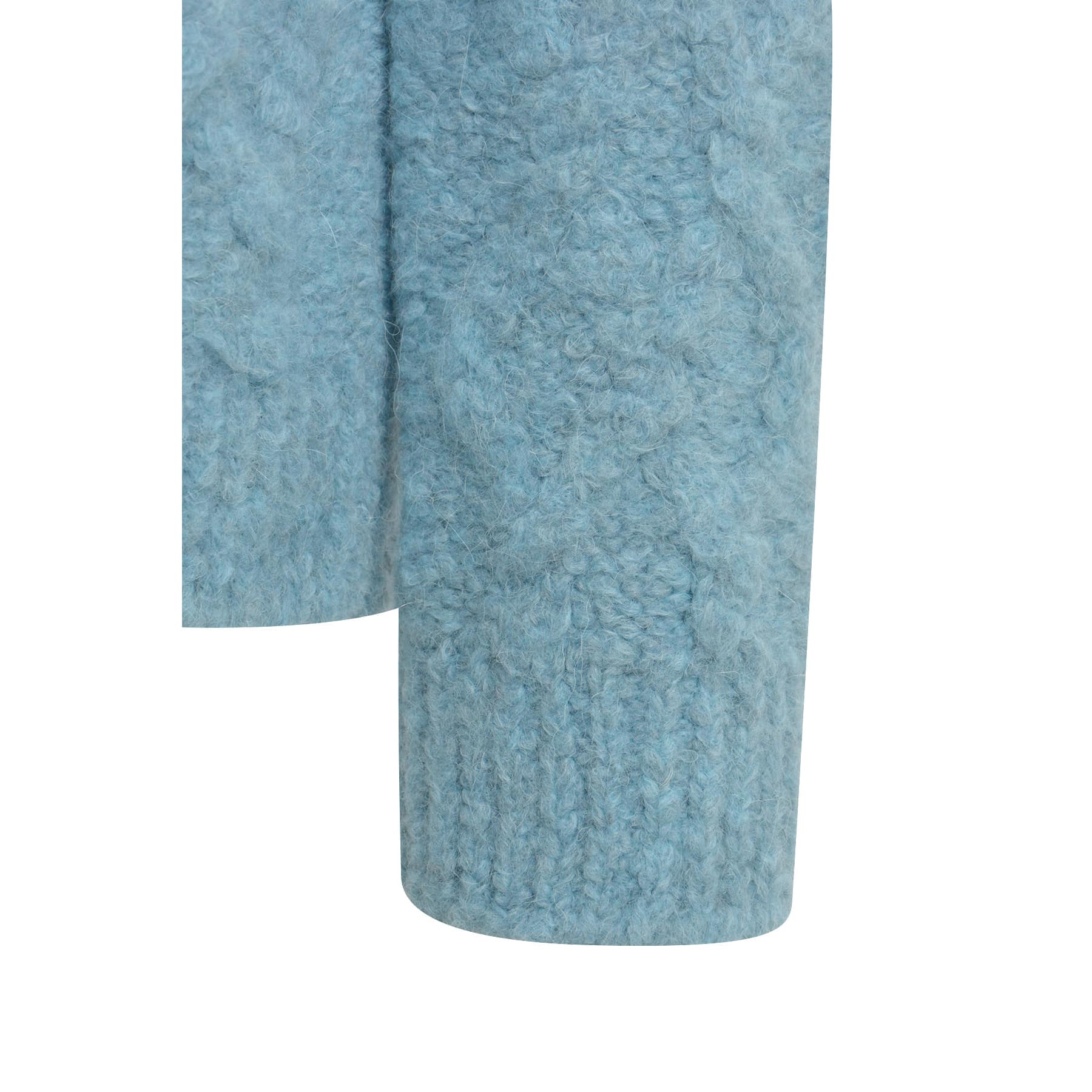 Lichtblauwe pull van Milano Italy in iceblue. Deze gebreide trui is gemaakt van een mix met alpaca wol en heeft een los vallende pasvorm. De trui heeft lange mouwen, een col en is in motief gebreid.