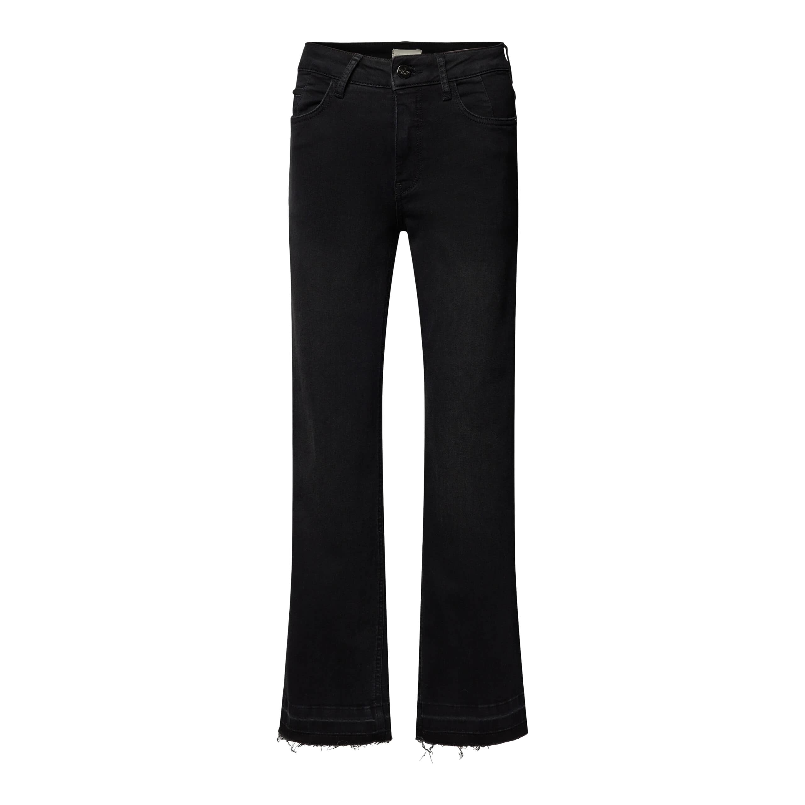 Zwarte jeans van Milano Italy. Deze spijkerbroek is gemaakt van een zwarte denim stretch stof en heeft een bootcut pasvorm. De jeans sluit met een knoop- en ritssluiting, heeft twee steekzakken, twee achterzakken en een gerafelde zoom.