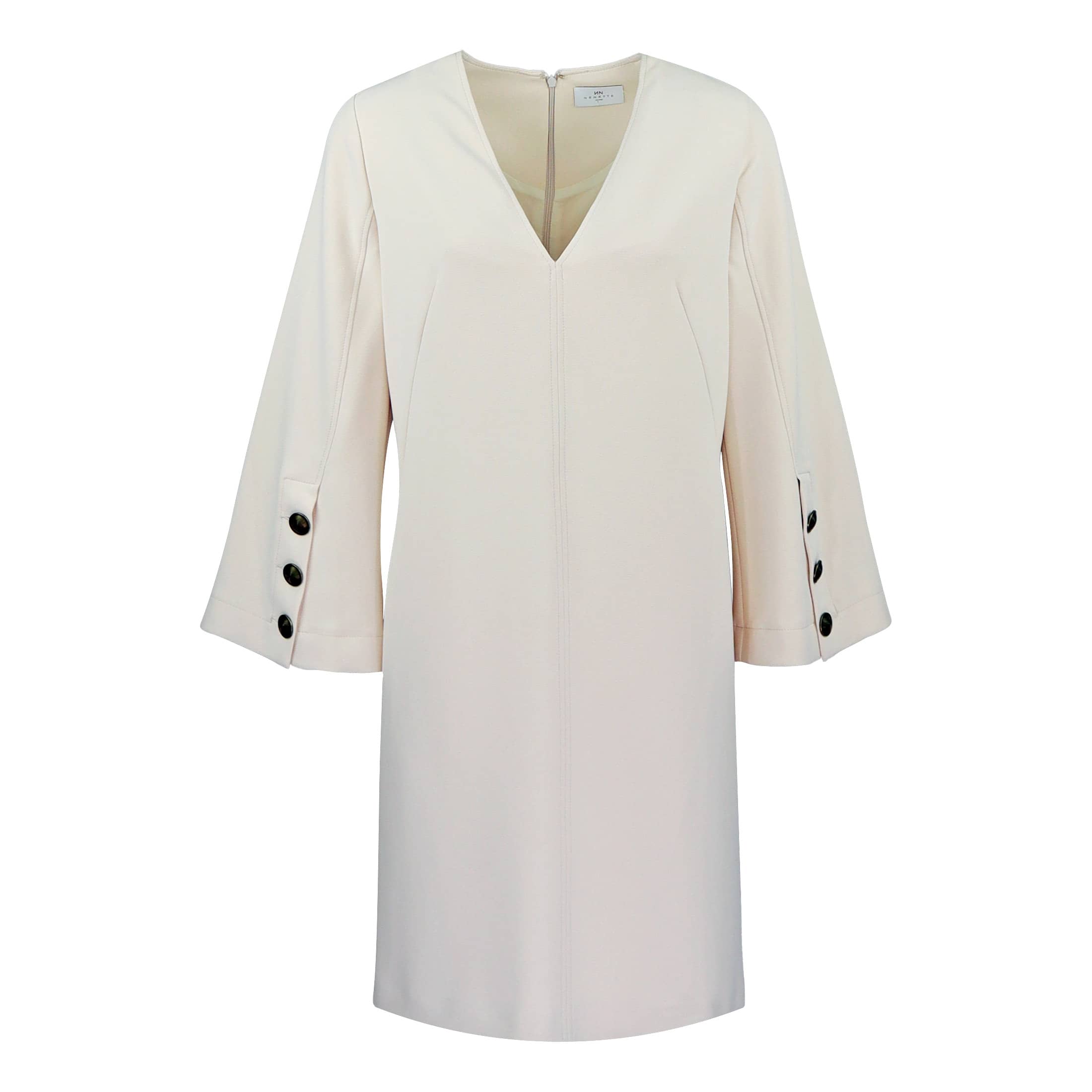 Ecru kleedje van Nenette, model Albea in ivory. Deze jurk is gevoerd en heeft een rechte pasvorm met wijd uitlopende mouwen. De jurk sluit met een verborgen ritssluiting aan de achterzijde.