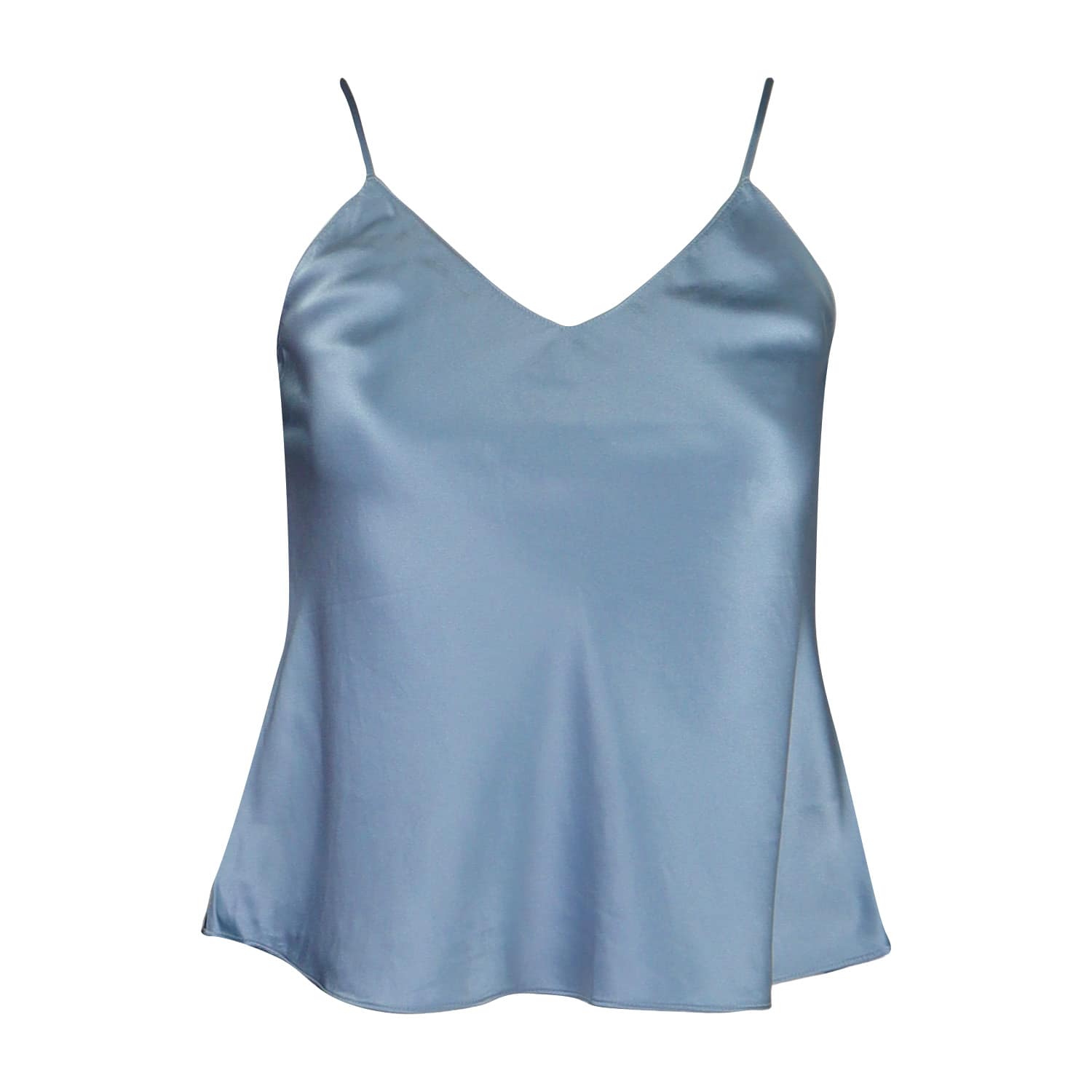 Lichtblauwe top van Paul & Joe, model Rcapri. Deze top is gemaakt van 100% zijde en heeft verstelbare spaghetti bandjes. De top heeft een V-insnede en wijder uitlopende pasvorm.