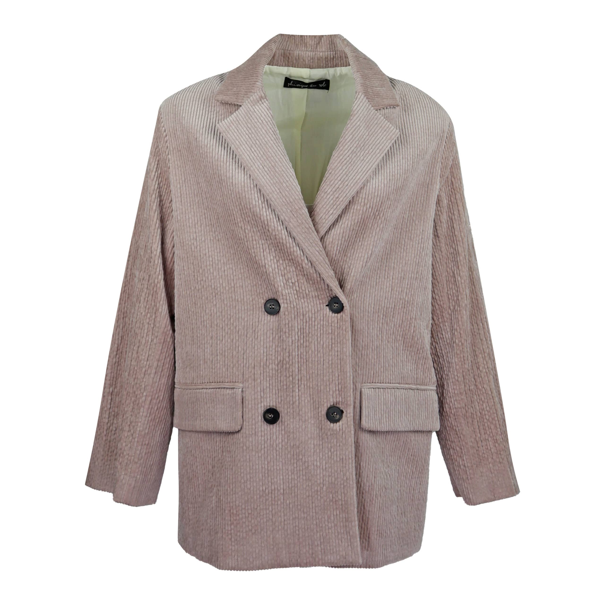 Fluwelen blazer van Phisique du Role in mauve. Deze licht oversized blazer is gemaakt van een ribfluwelen stof in oud roze en is gevoerd aan de binnenzijde. De blazer heeft een split aan de achterzijde, sluit met een dubbele knoopsluiting en heeft twee klepzakken.