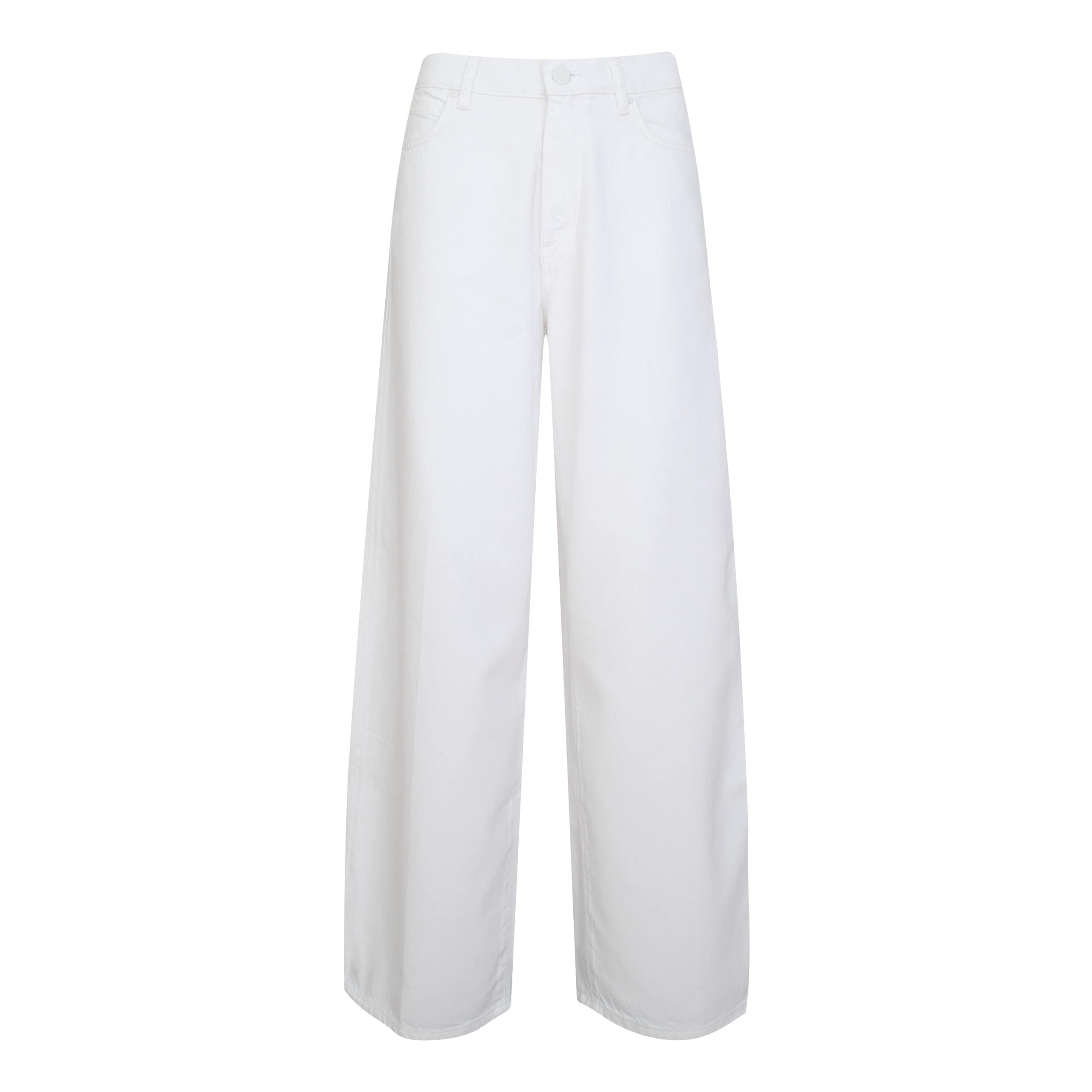 Witte loose fit jeans van Pinko, model Lauryn loose in white. Deze broek is gemaakt van een lyocell met katoen mix, heeft geen stretch, een hoge taille, relaxte, loose fit pasvorm. De jeans sluit met een knoop- en ritssluiting, heeft twee steekzakken, twee achterzakken en lichte barrel legs.