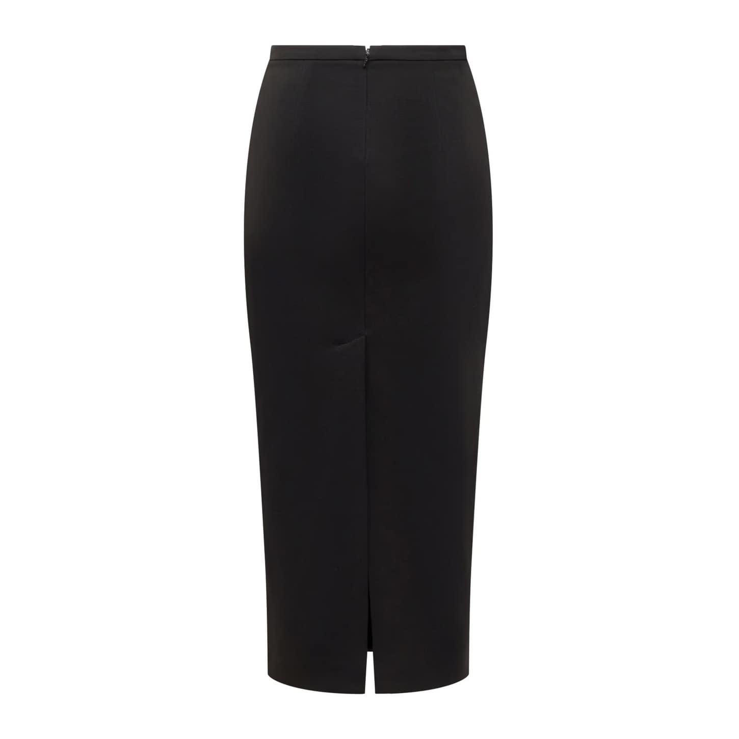 Midi rok van Pinko, model Ombrello gonna. Deze kokerrok is gemaakt van zwarte stretch stof en valt op de kuiten. De rok heeft een hoge taille, split aan de achterzijde en sluit met een verborgen ritssluiting aan de zijkant.