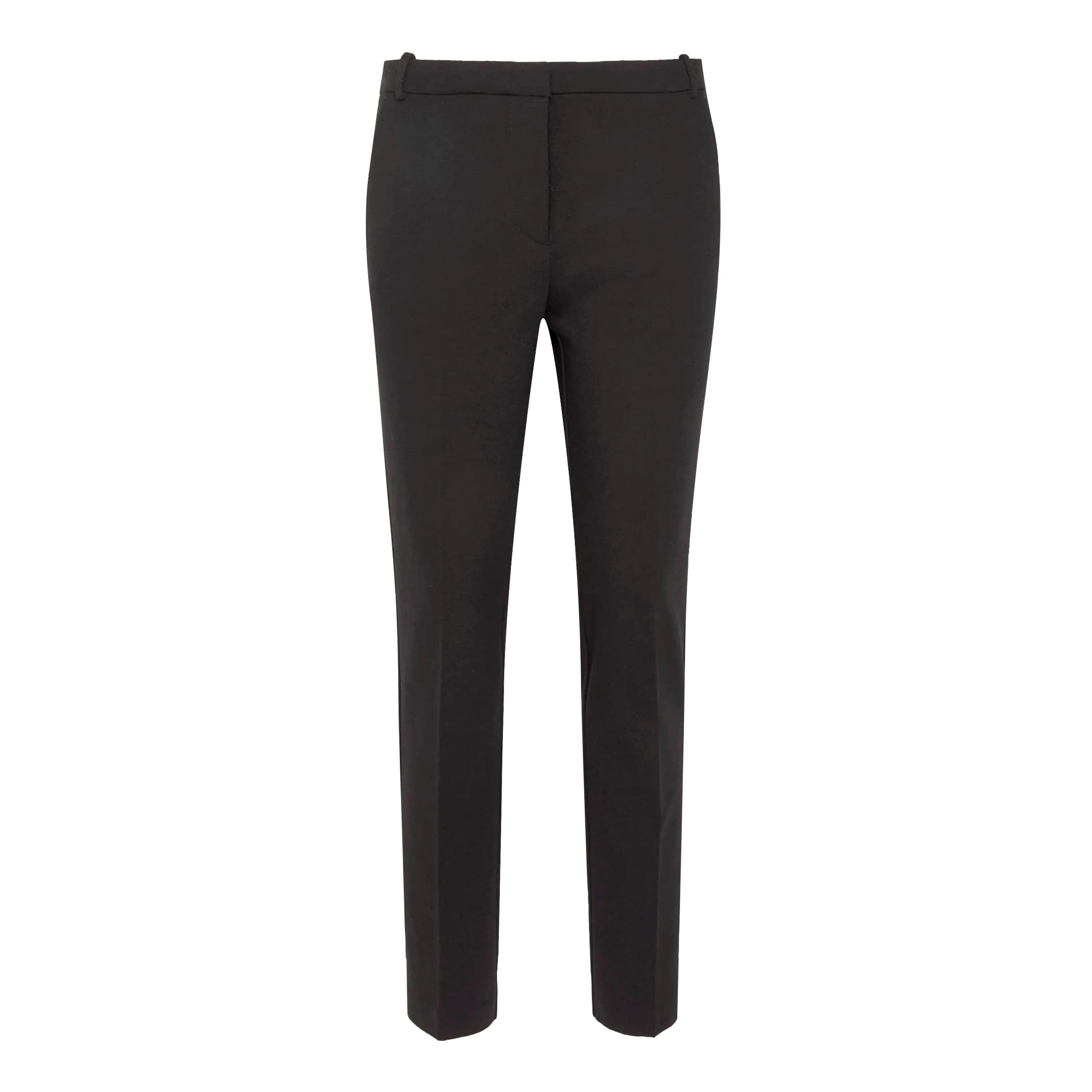 Zwarte pantalon van Pinko, model Bello pantalone in punto stoffa. Deze 7/8 broek is gemaakt van een zwarte stretch stof, heeft een normale taille en toelopende broekspijpen. De pantalon sluit met haakjes, knoop- en ritssluiting, heeft twee steekzakken en twee paspelzakjes.