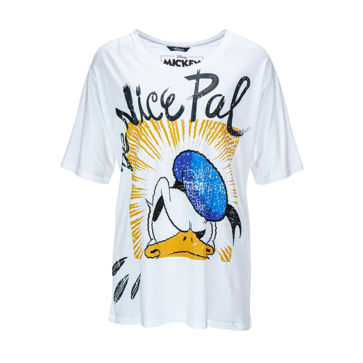 Wit t-shirt van Princess goes Hollywood. Dit oversized shirt heeft op de voorzijde de tekst Be Nice Pal en een afbeelding van Donald Duck. Het los vallende shirt is gemaakt van een mix van katoen en modal, waardoor het extra zacht aanvoelt en fijn draagt.