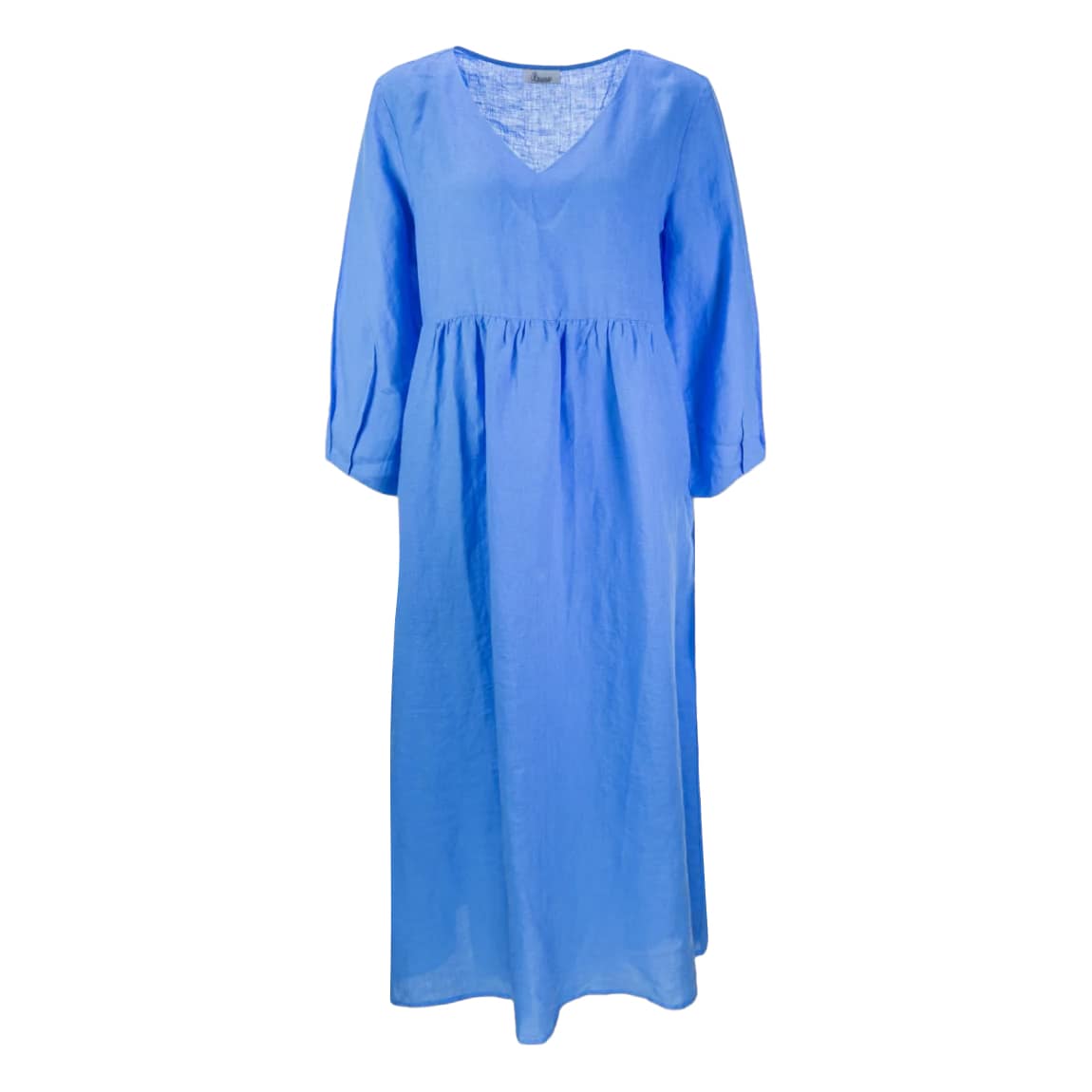 Linnen kleedje van Princess goes Hollywood, model blue linen midi dress in malibu blue. Deze jurk is gemaakt van 100% linnen en heeft een uitlopende pasvorm. De midi jurk heeft een V-hals, twee steekzakken en lange mouwen.