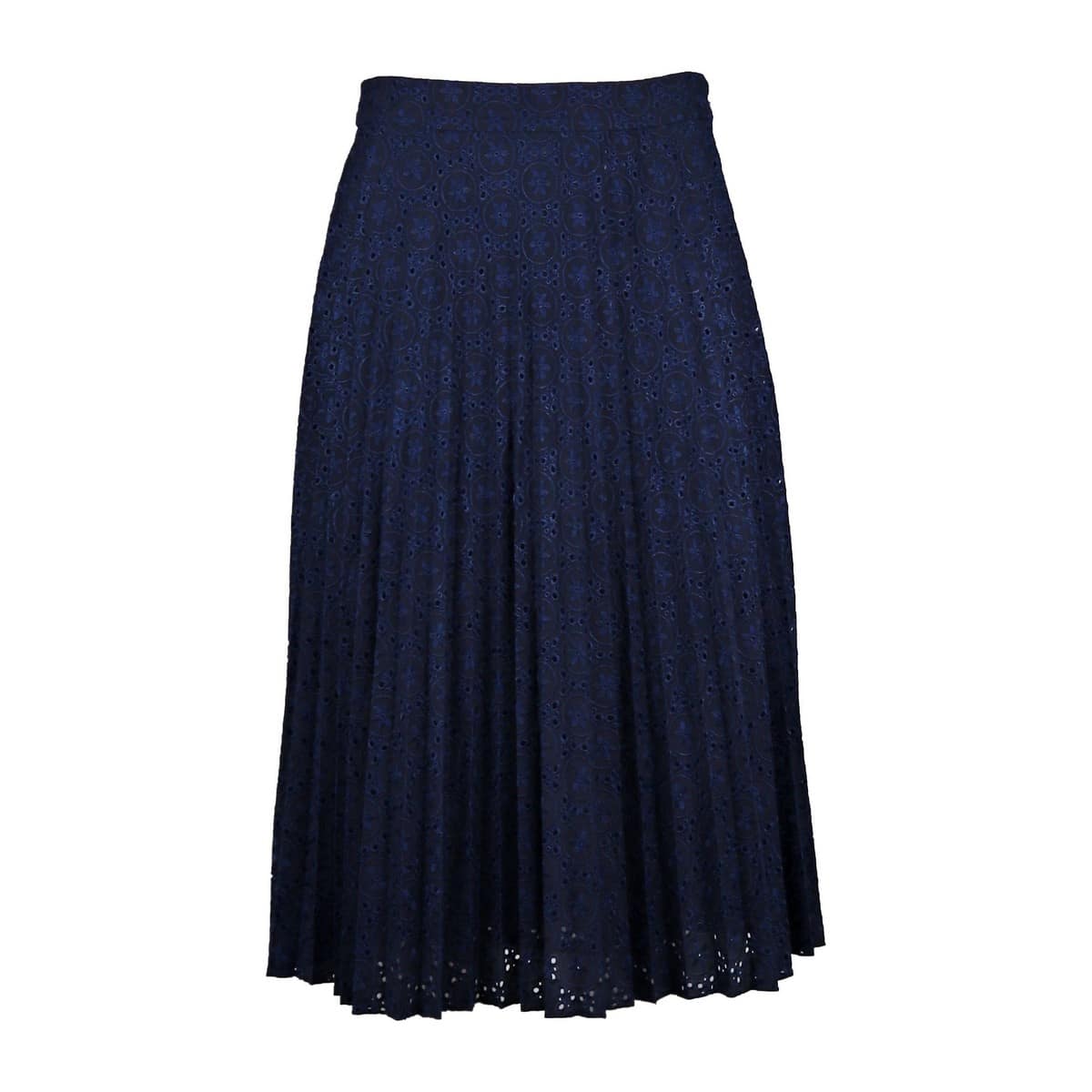 Plissé rok van Princess goes Hollywood. Deze donkerblauwe rok heeft over de gehele rok plooien en is gemaakt van een broderie stof. De rok is gevoerd en sluit met een verborgen ritssluiting met haakje aan de zijkant.