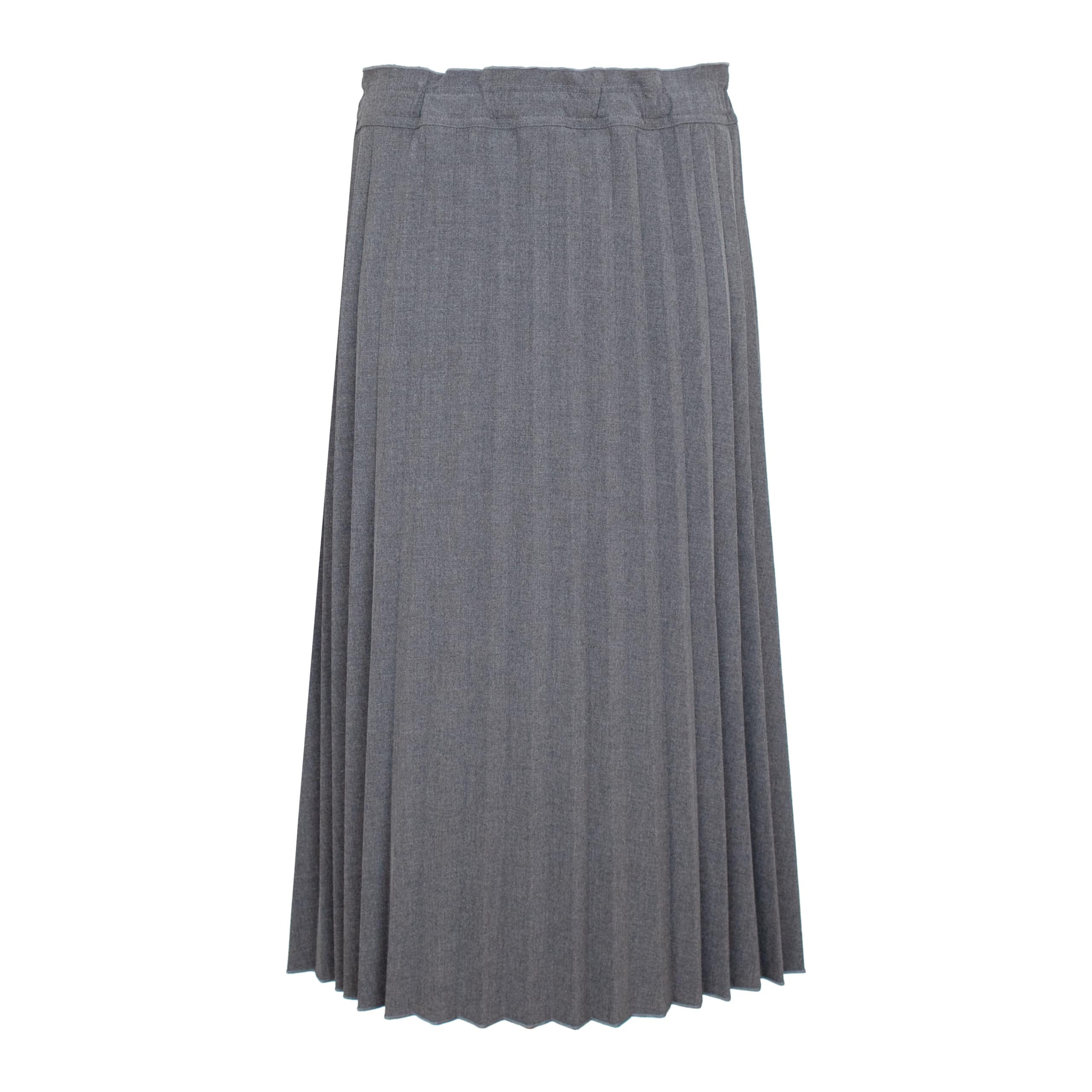 Grijze plissé rok van Princess goes Hollywood, model wool plissee long skirt in silver grey. Deze geplooide rok is gemaakt van een grijze, wol look stof. De midi rok heeft een elastische taille en valt op de kuiten.