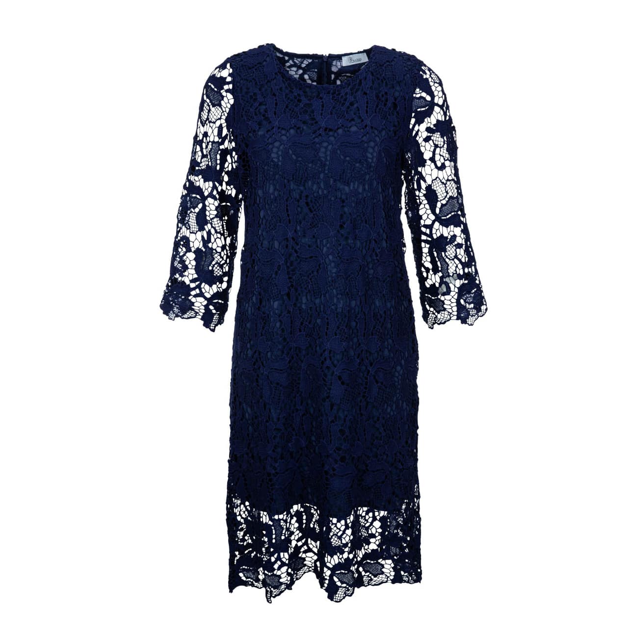 Kanten kleedje van Princess goes Hollywood. Deze donkerblauwe jurk is gevoerd en heeft een all-over kanten bovenlaag. De jurk heeft een rechte pasvorm en sluit met een verborgen ritssluiting aan de achterzijde.