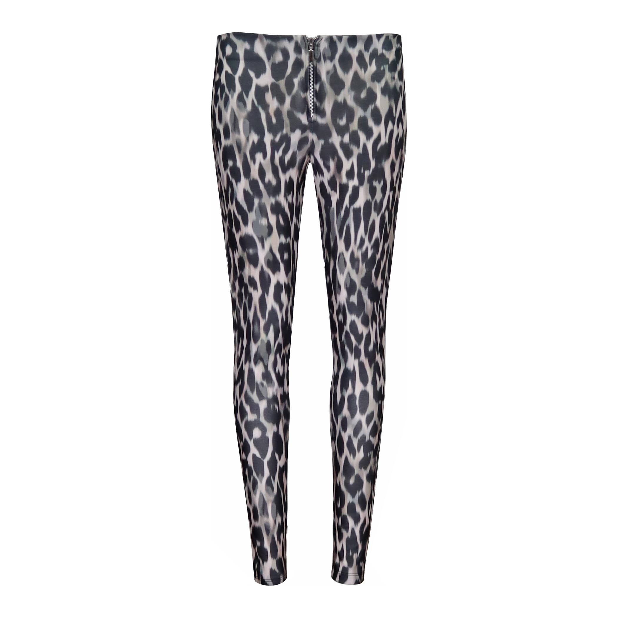 Legging Princess goes Hollywood, model tight leggings in cream leo. Deze legging is gemaakt van een gladde stretch stof met luipaard print en heeft een aansluitende pasvorm. De broek heeft een elastische taille en sluit aan de voorzijde met een zichtbare rits.