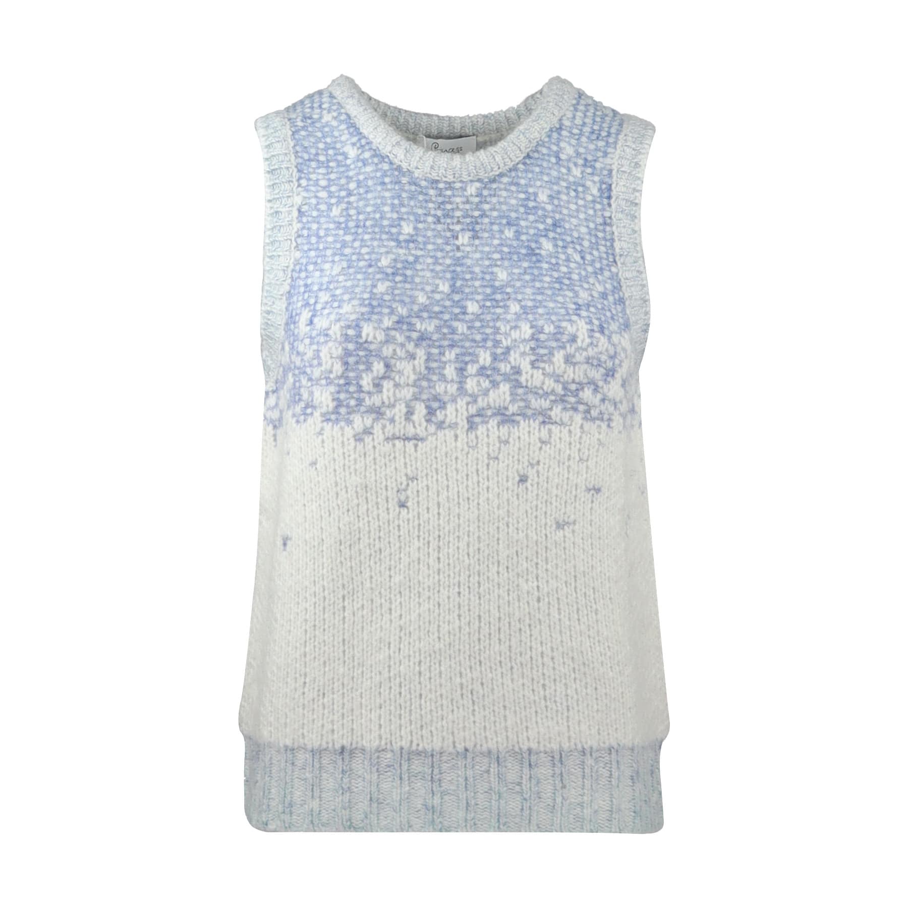 Gebreide debardeur van Princess goes Hollywood, model pullunder knitted color effect in brilliant blue. Dit mouwloze vest is gemaakt van een mix met merino en alpaca wol. De spencer heeft een rechte pasvorm met een ronde hals en gebreide tekening die van blauw naar wit loopt. Aan de achterzijde heeft de debardeur dezelfde tekening die loopt van blauw naar blauw groen en dan naar wit.