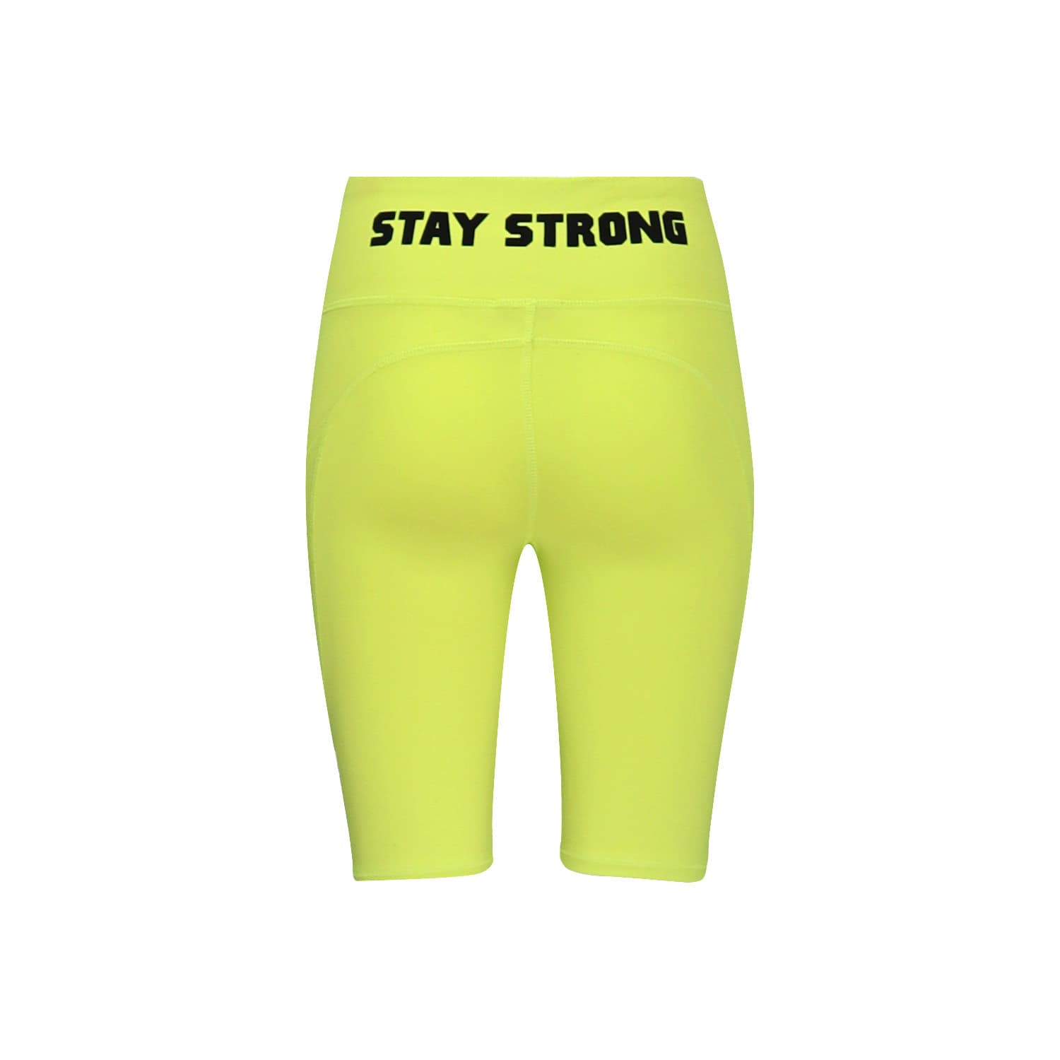 Aansluitende short van Princess goes Hollywood in lime punch. Deze sport broek is gemaakt van een stevige stretch stof met op de achterzijde de woorden: stay strong. De short heeft een hoge elastische taille en een steekzakje aan een zijde.