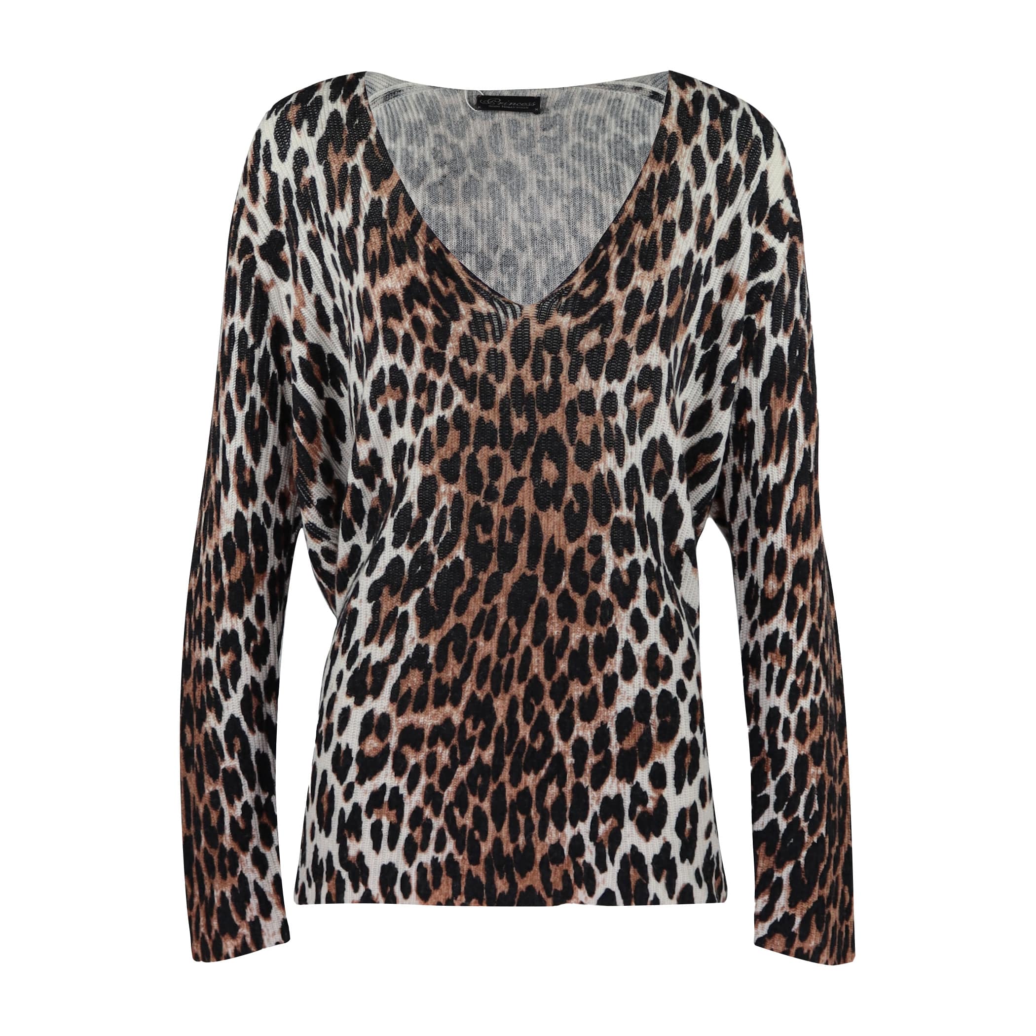 Los vallende wollen pull van Princess goes Hollywood. Deze oversized trui is gemaakt van wol mix met kasjmier en heeft een luipaard tekening. De pull heeft een boxy pasvorm, V-hals, lange mouwen en een splitje aan beide kanten in de zoom.