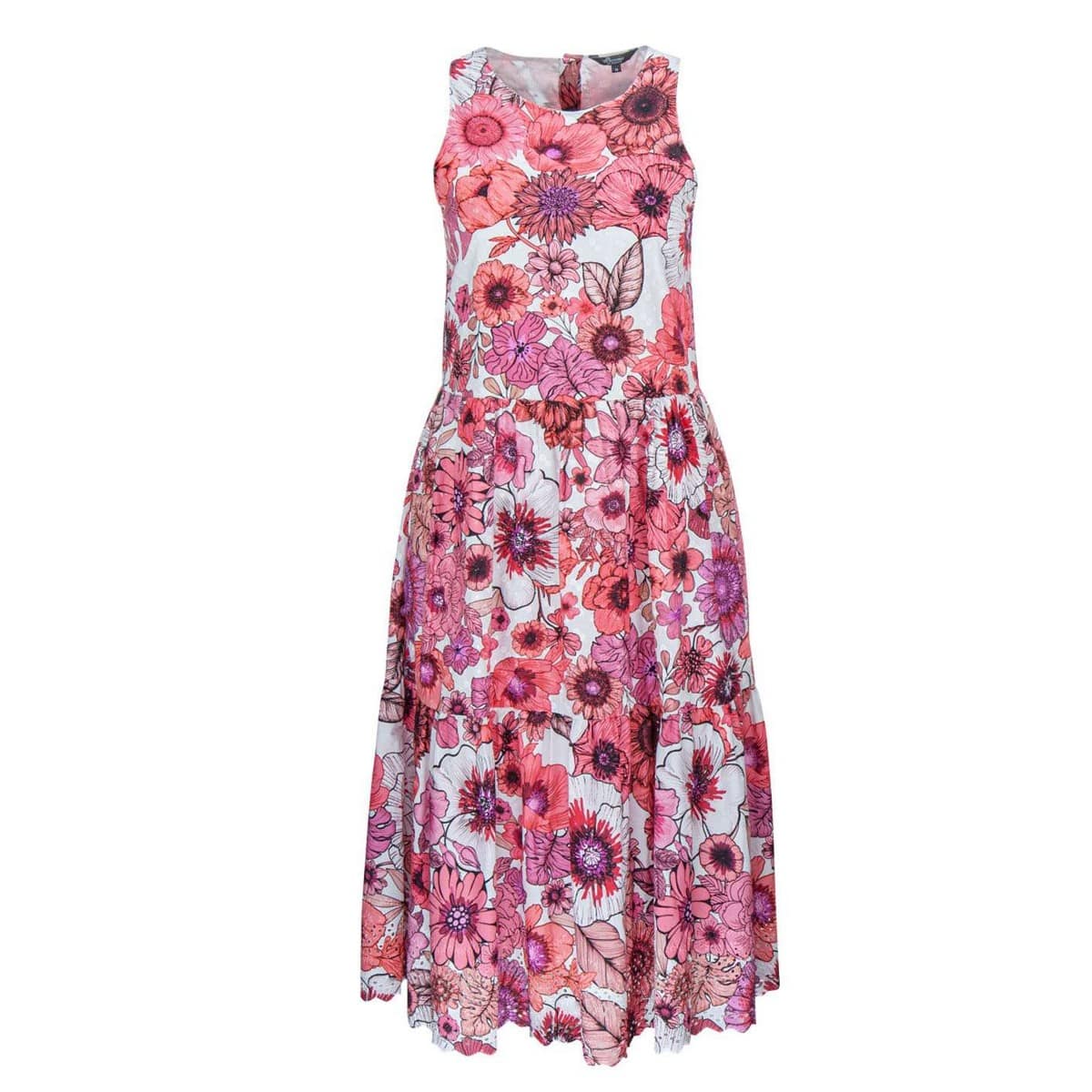 Kleurrijk kleedje van Princess goes Hollywood. Deze katoenen jurk is gevoerd, valt tot op de knie en heeft een roze bloemen print. De jurk is mouwloos, heeft twee steekzakken en sluit aan de achterzijde met knoopjes.