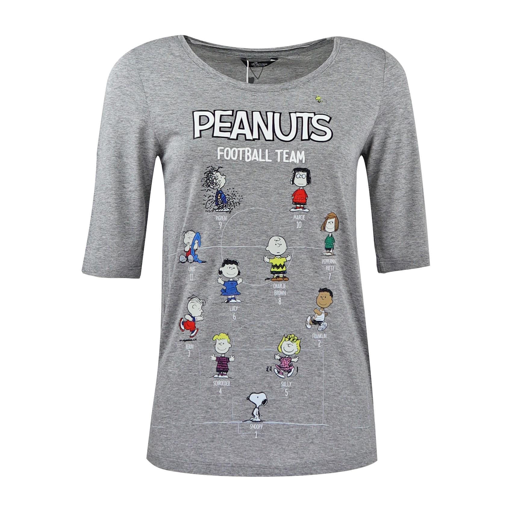 Grijs t-shirt van Princess goes Hollywood. Dit shirt heeft op de voorzijde een afbeelding van Snoopy met zijn familie met als titel Peanuts football team. Sommige familie leden zijn versierd met fijne steentjes. Het shirt heeft een normale pasvorm, halve mouwen en een ronde hals.